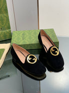 BLONDIE LOGO-PLAQUE LOAFERS IN BLACK SUEDE