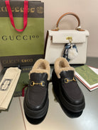 GG LOAFER IN BLACK CALFSKIN WITH BEIGE WOOL LINING