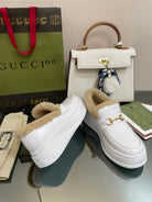 GG LOAFER IN WHITE CALFSKIN WITH BEIGE WOOL LINING