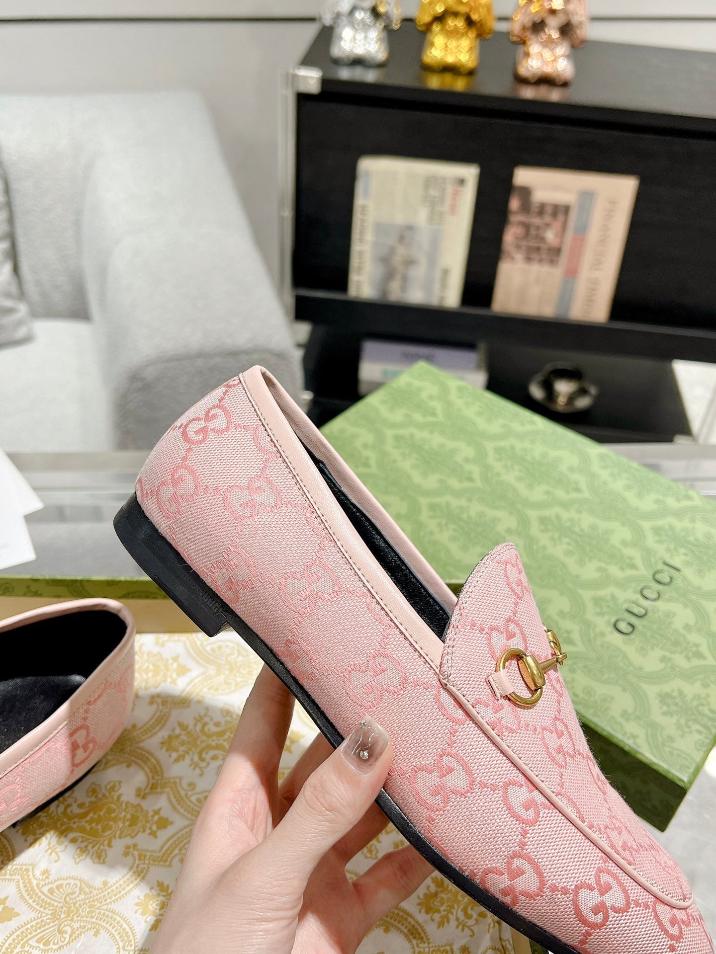 MEN'S LOAFER WITH HORSEBIT IN PINK PASTEL MONOGRAM JACQUARD FABRIC