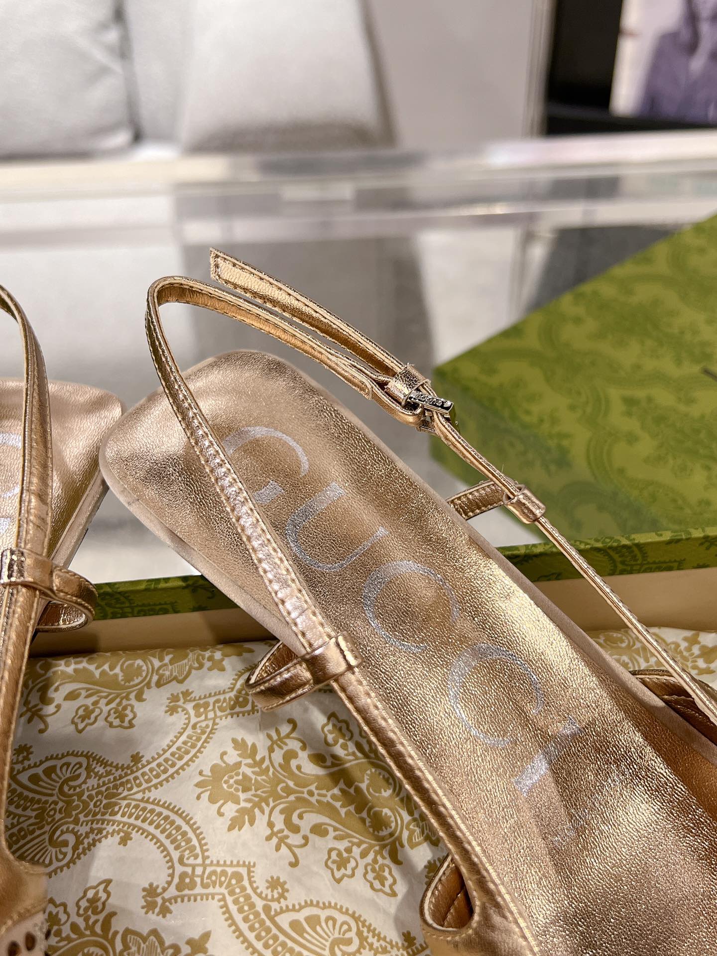GG CRYSTALS SLINGBACK PUMP CREAM FABRIC