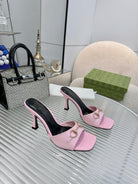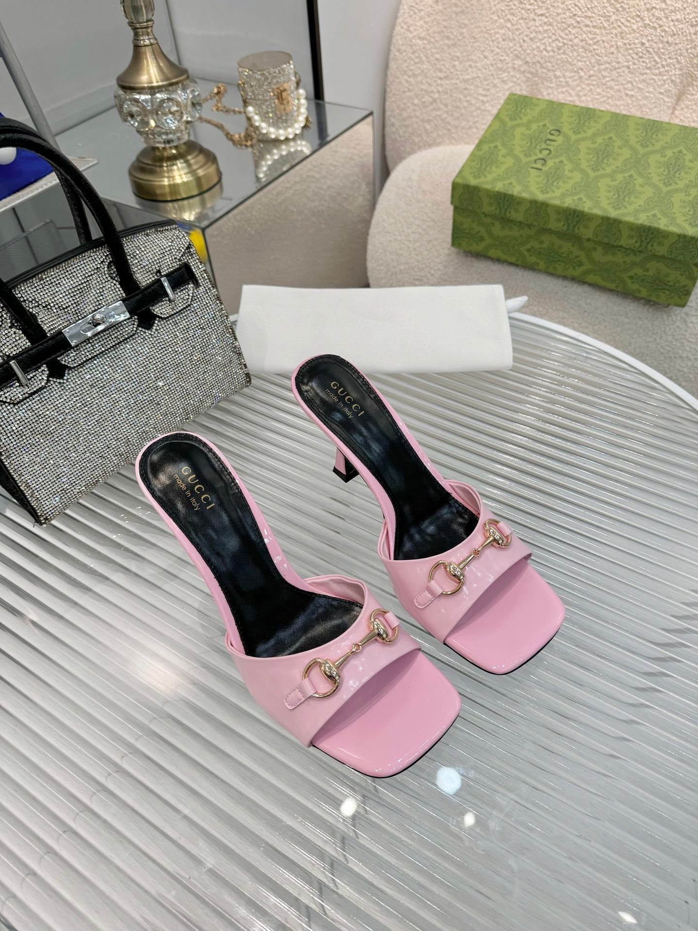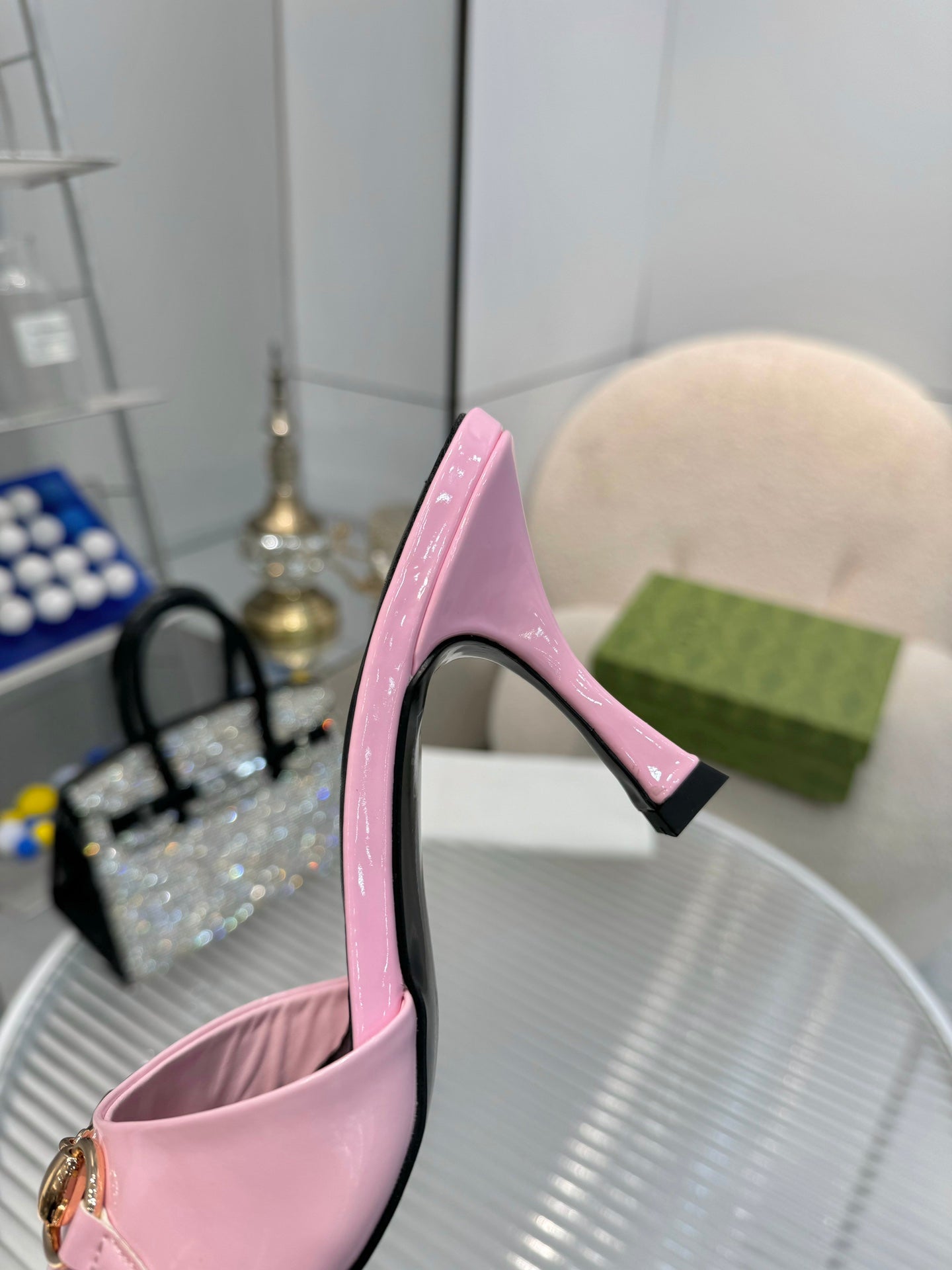 GG Gold Buckle Slide Sandal 80mm Light Pink Patent Leather 457563
