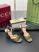GG Women Horsebit High Heel Sandal Open Toe Olive Sheepskin 149217