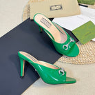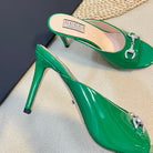GG Women's Horsebit mid-heel slide sandal in glossy Jade Green