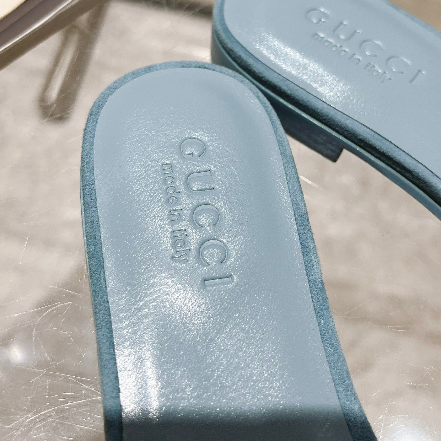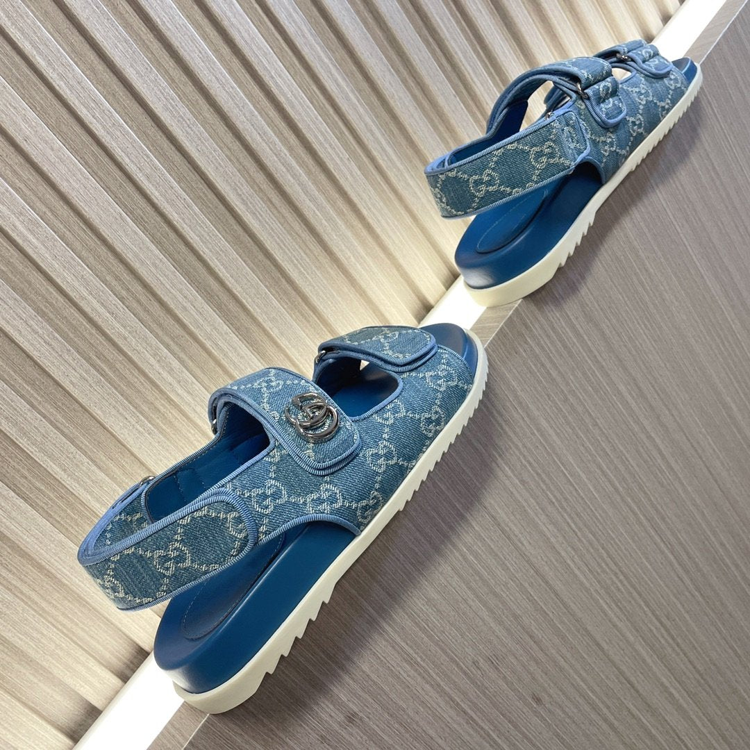 GG Rubber Sole Logo Sandals Blue Caro