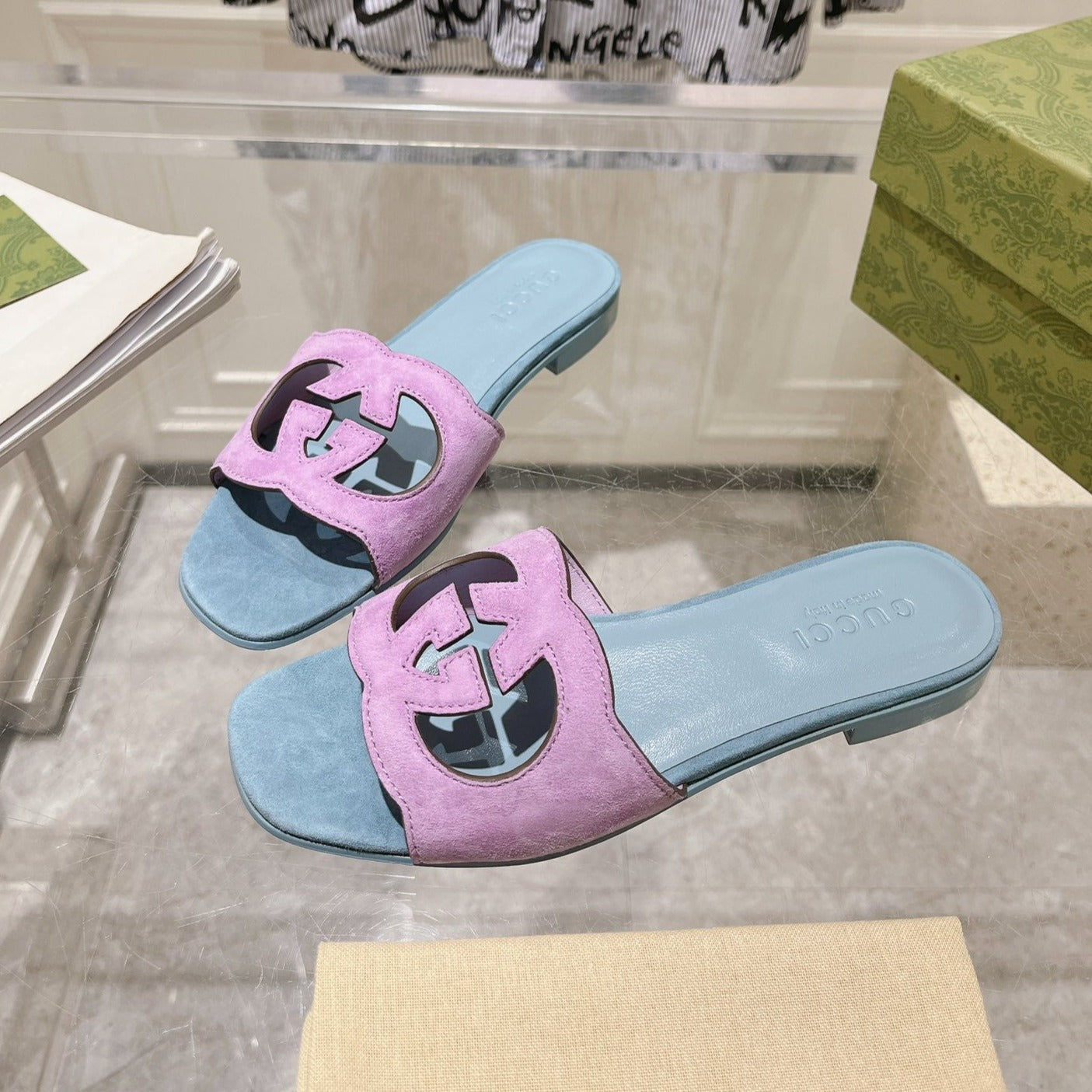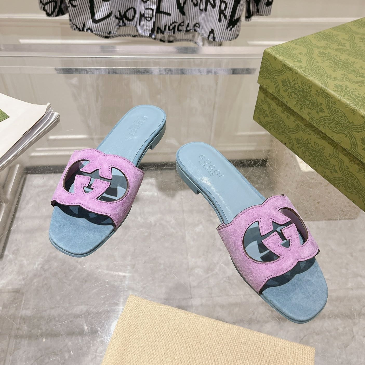 GG Interlocking double G hollow slippers Baby Blue