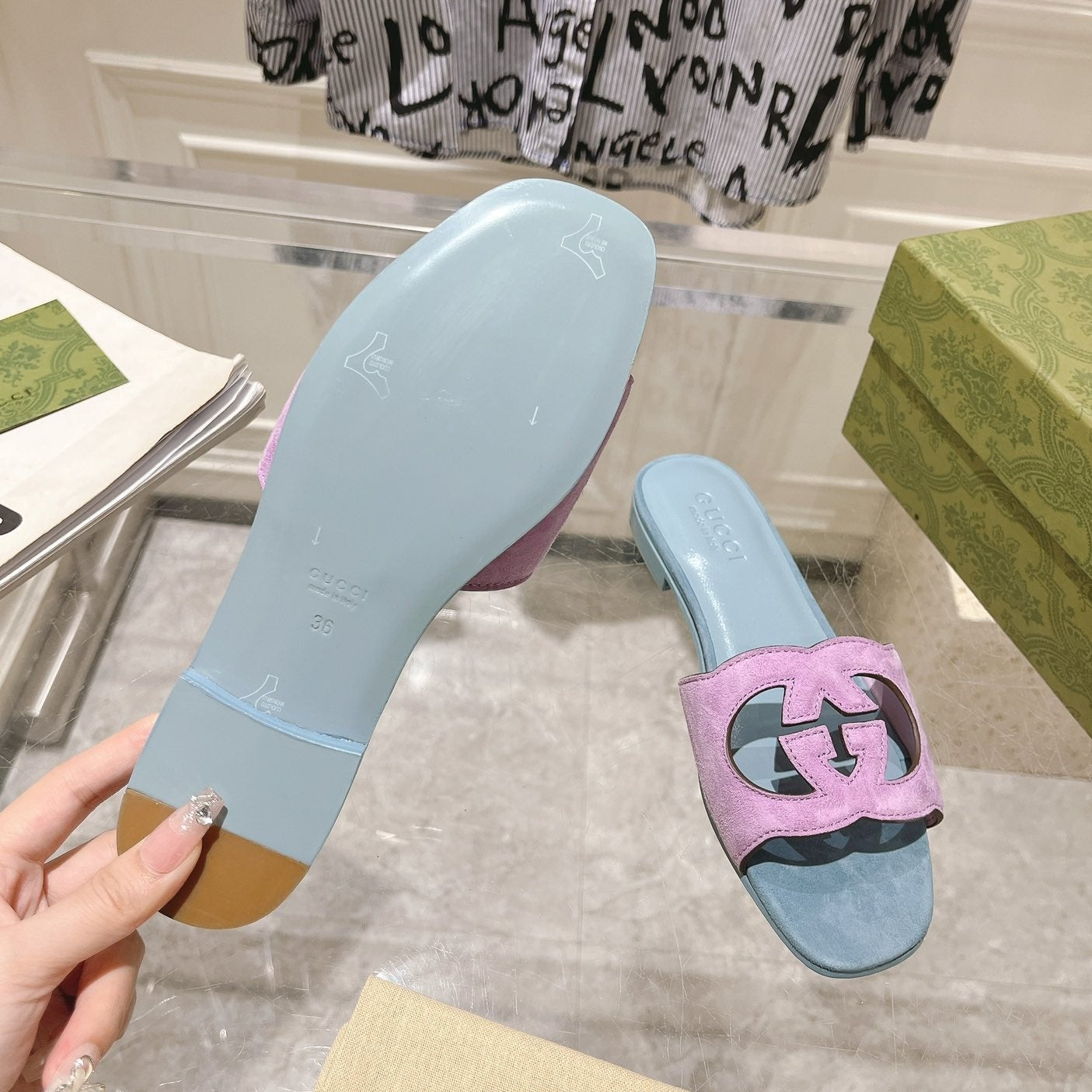 GG Interlocking double G hollow slippers Orchid Purple Blue