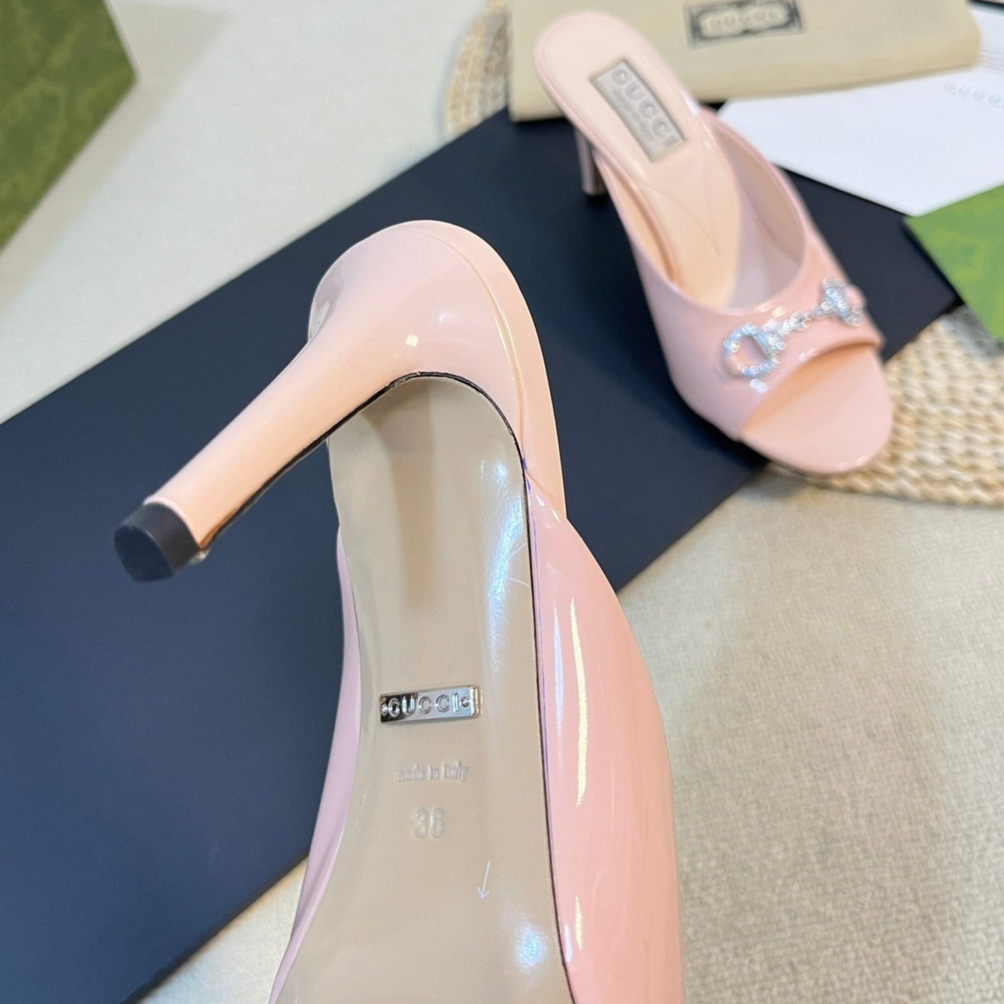 GG High Heels Half Slippers Pink