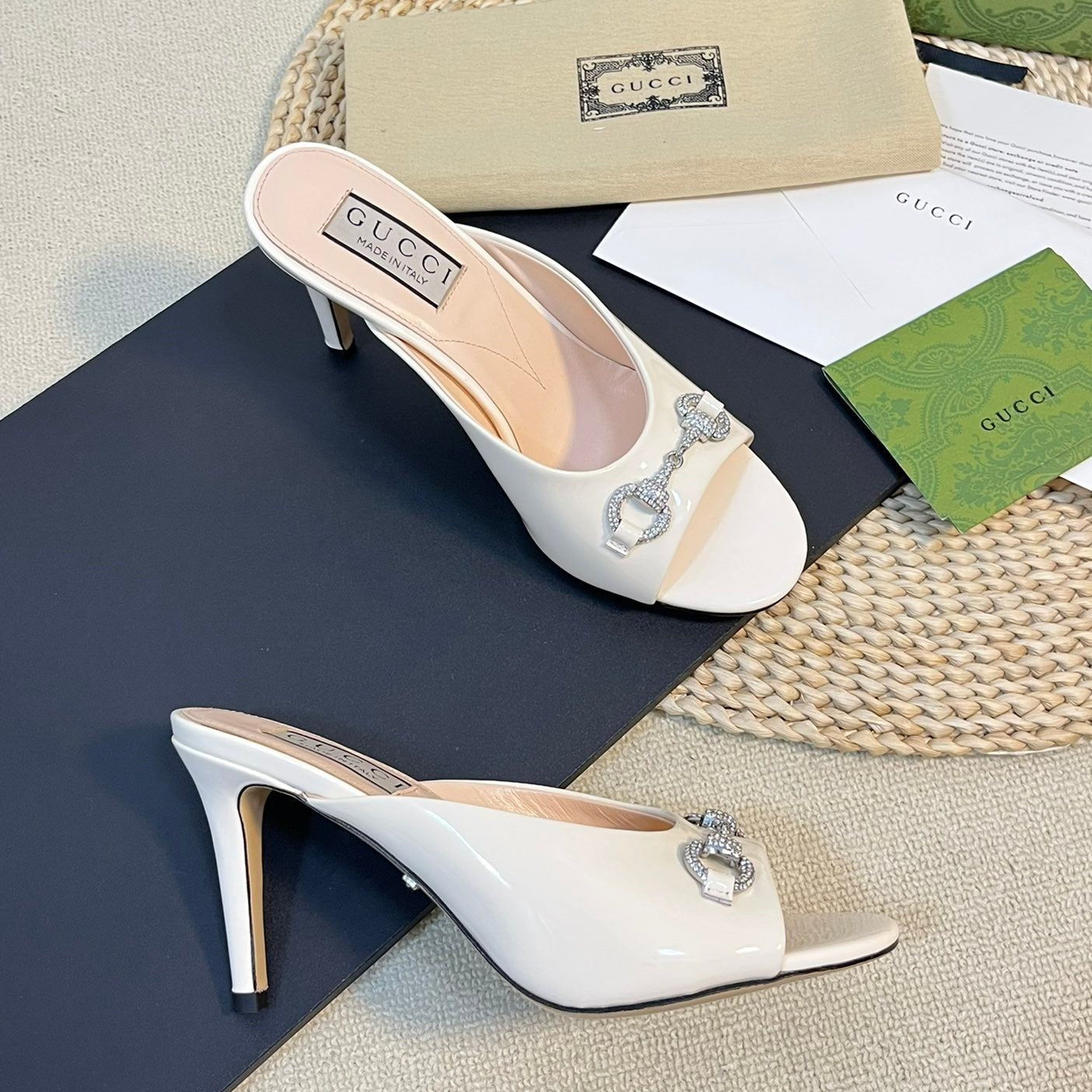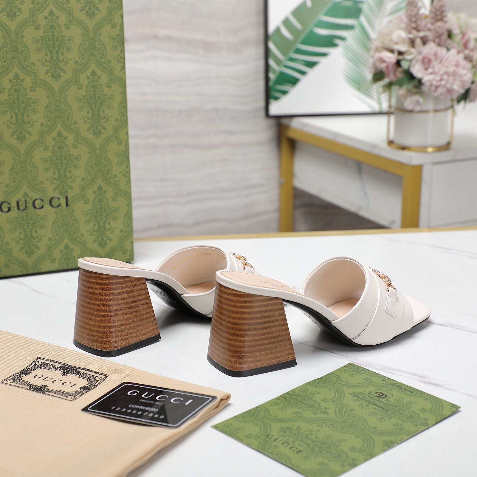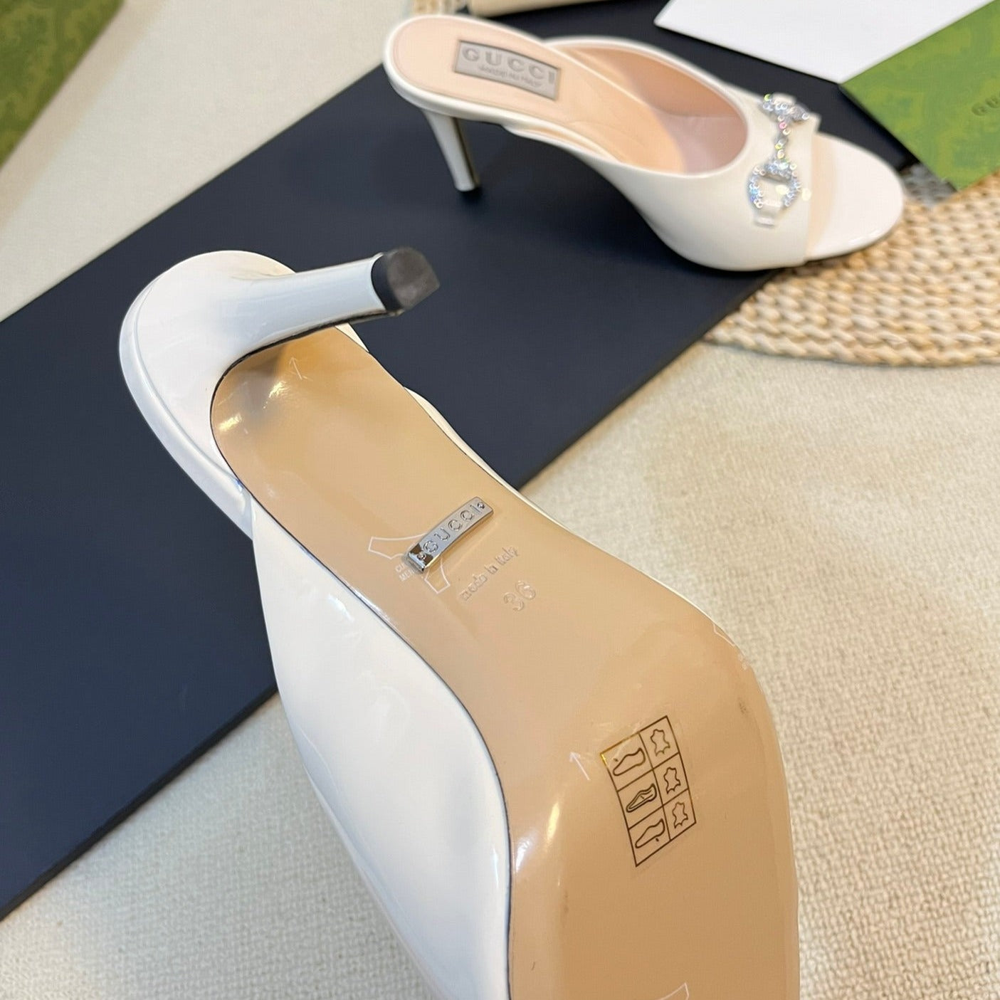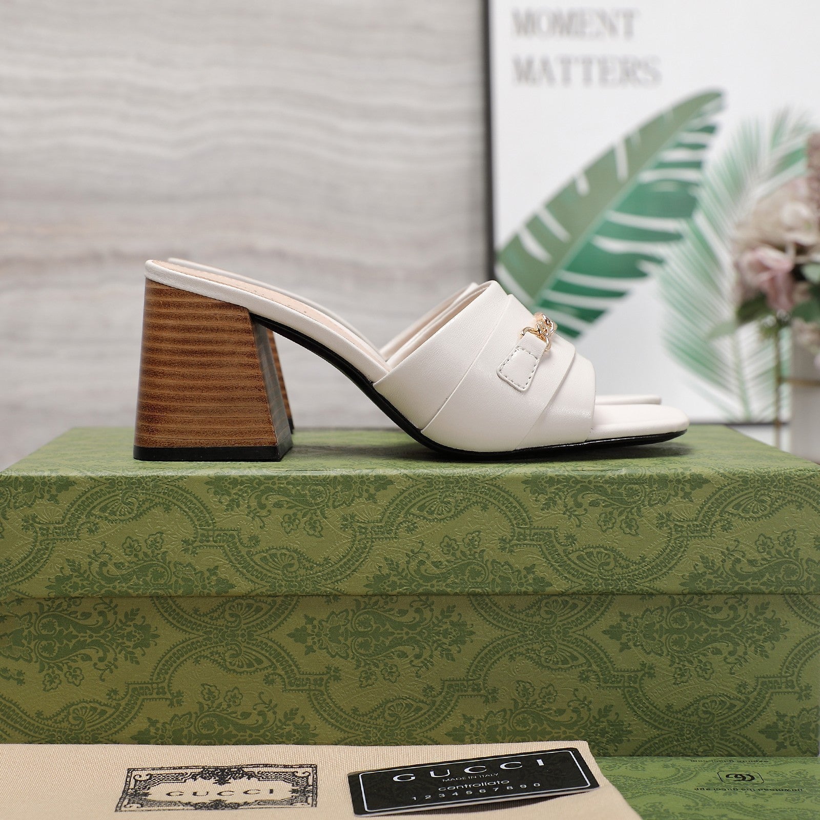 GG High Heels Half Slippers White