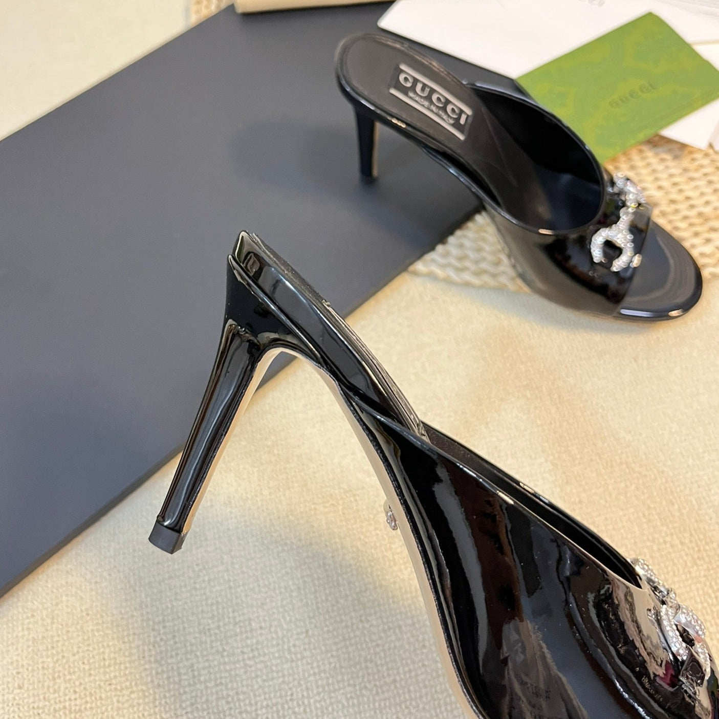 GG Vintage High Heel Slippers Black