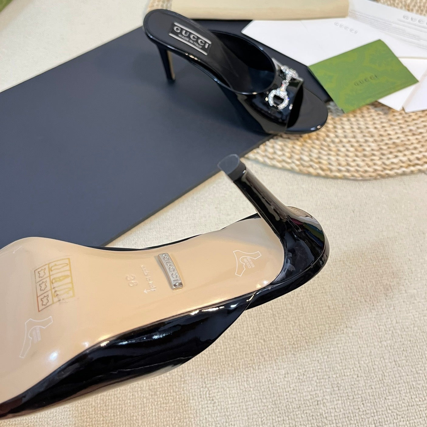 GG High Heels Half Slippers Black