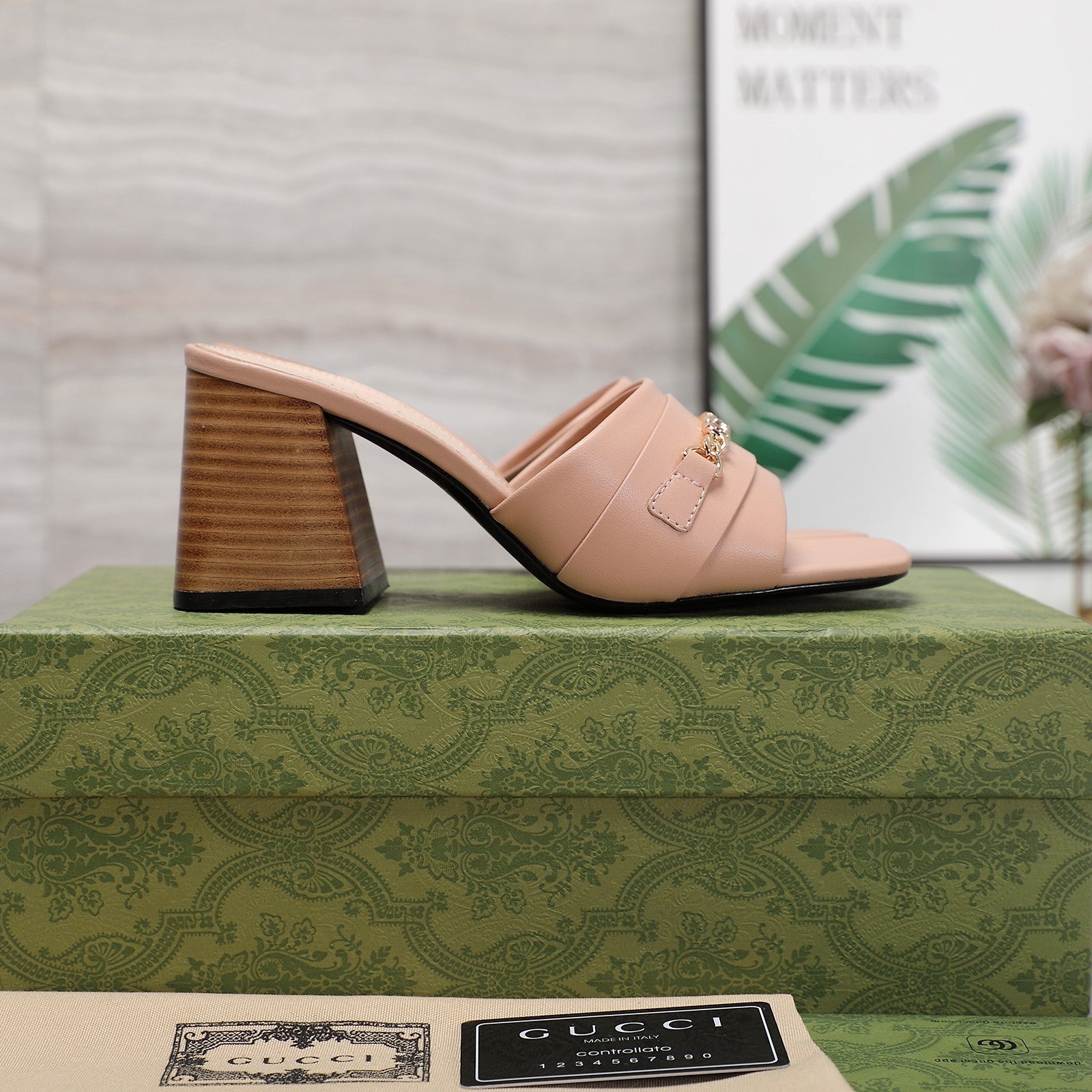 GG Vintage High Heel Slippers Pink Blush
