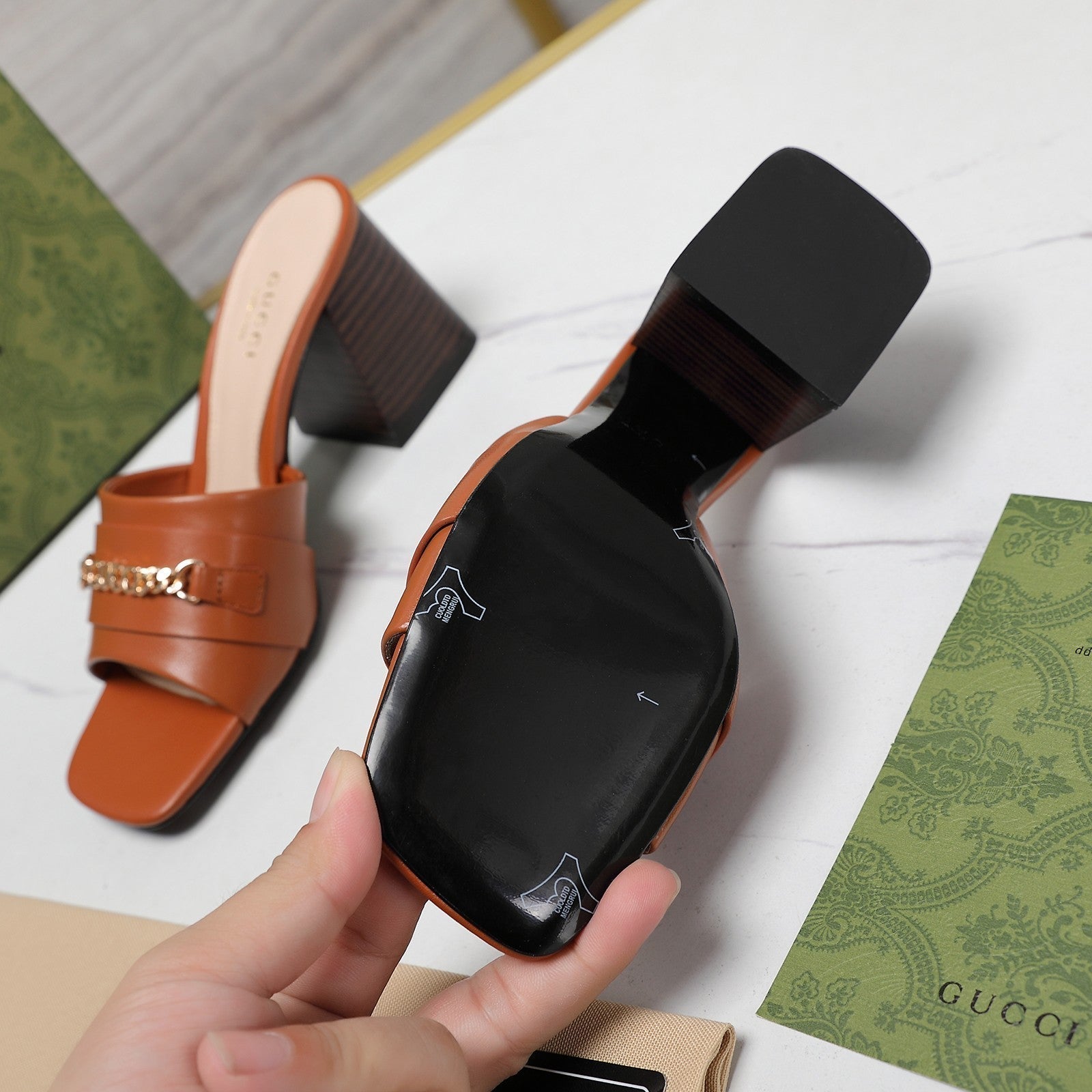 GG SANDALS HIGH-HEELED GREEN