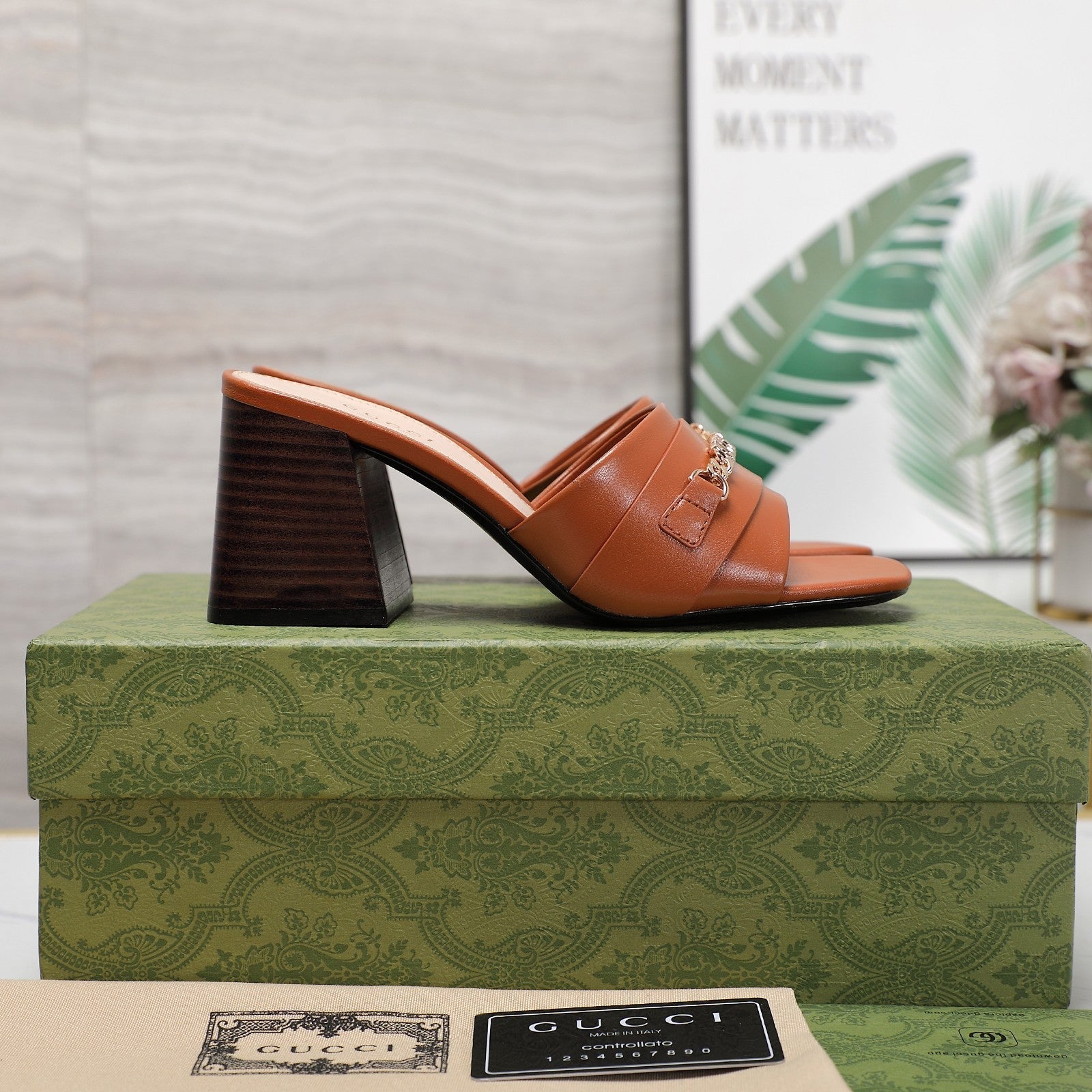 GG Vintage High Heel Slippers Brown