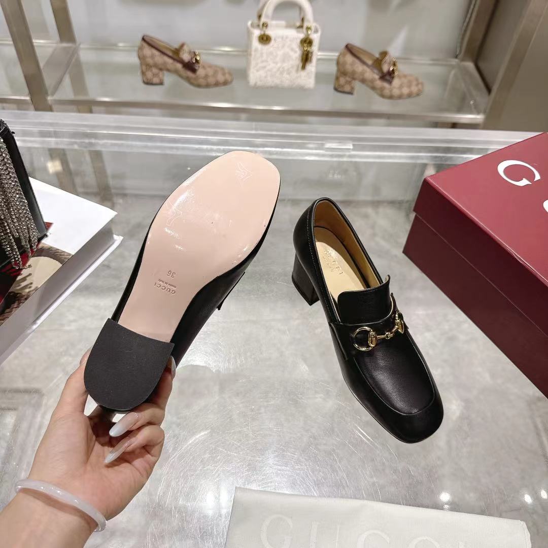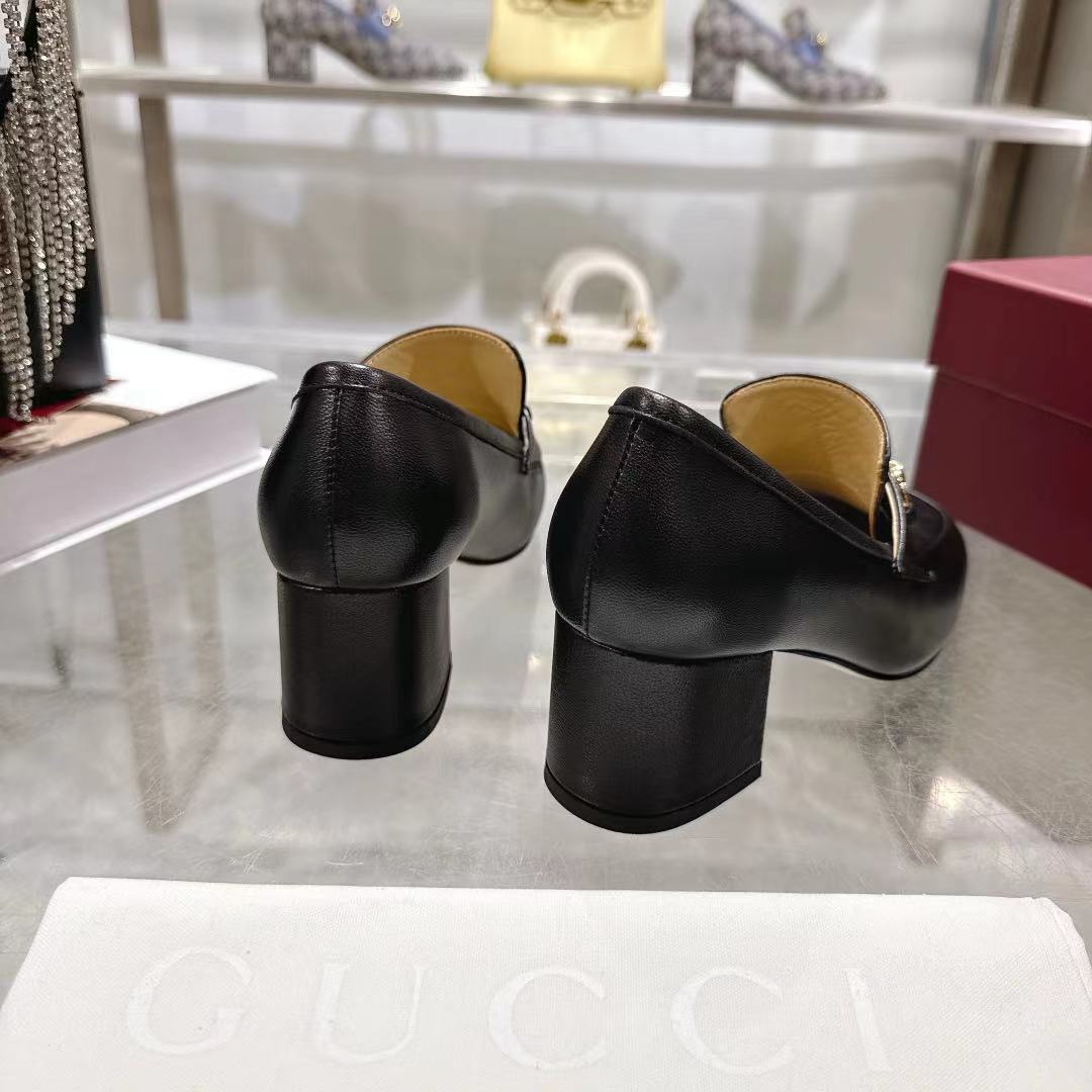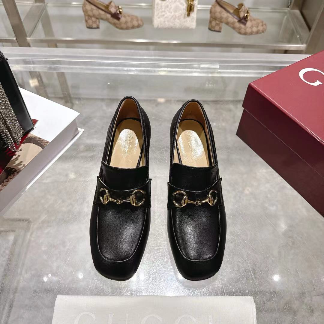 GG Women's Loafer Pump 55mm Horsebit Black Soft Cowhide 502606