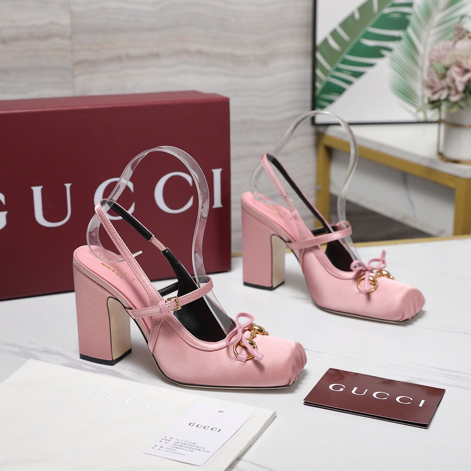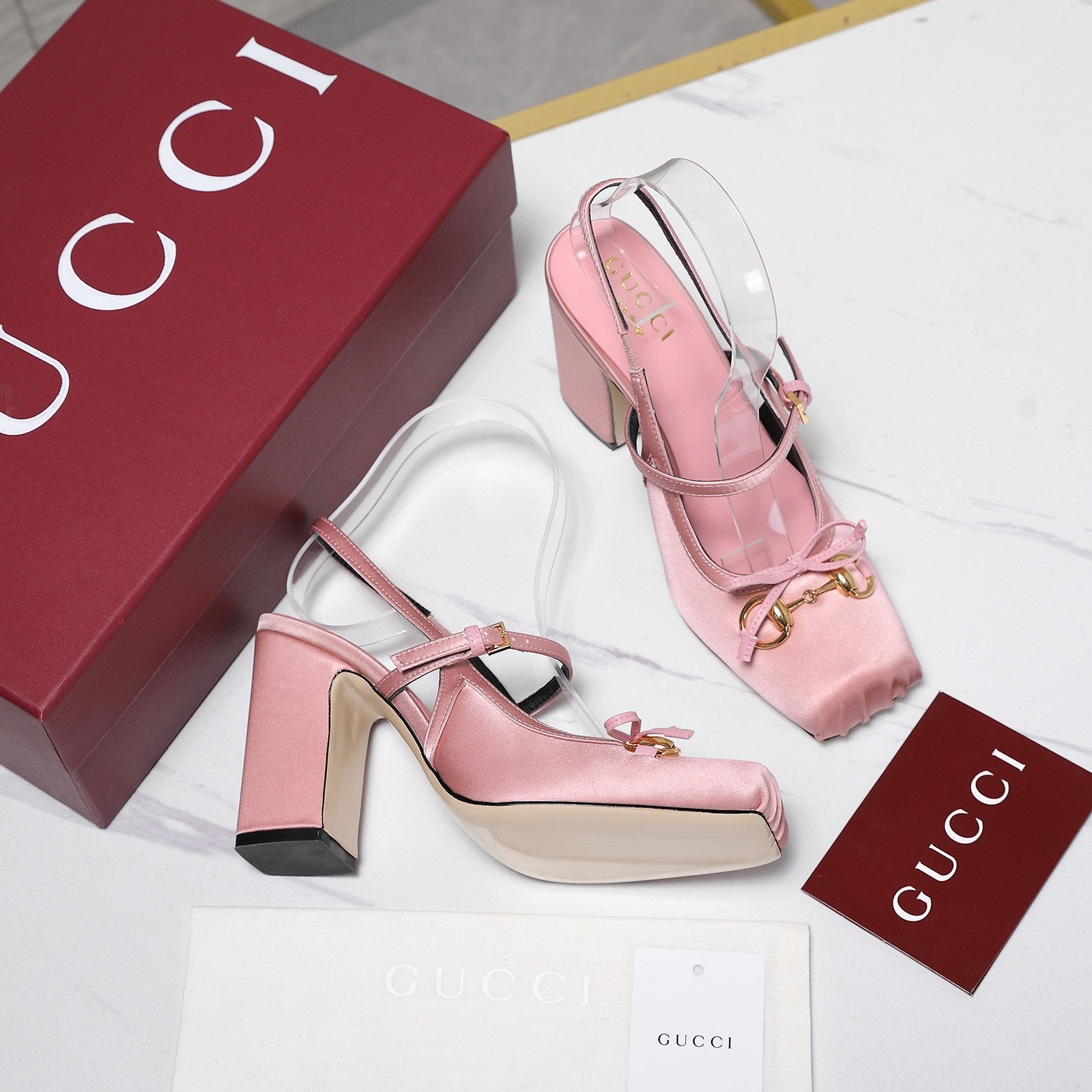 Gucci Horsebit Slingback Pumps Pink Satin Fabric 504422