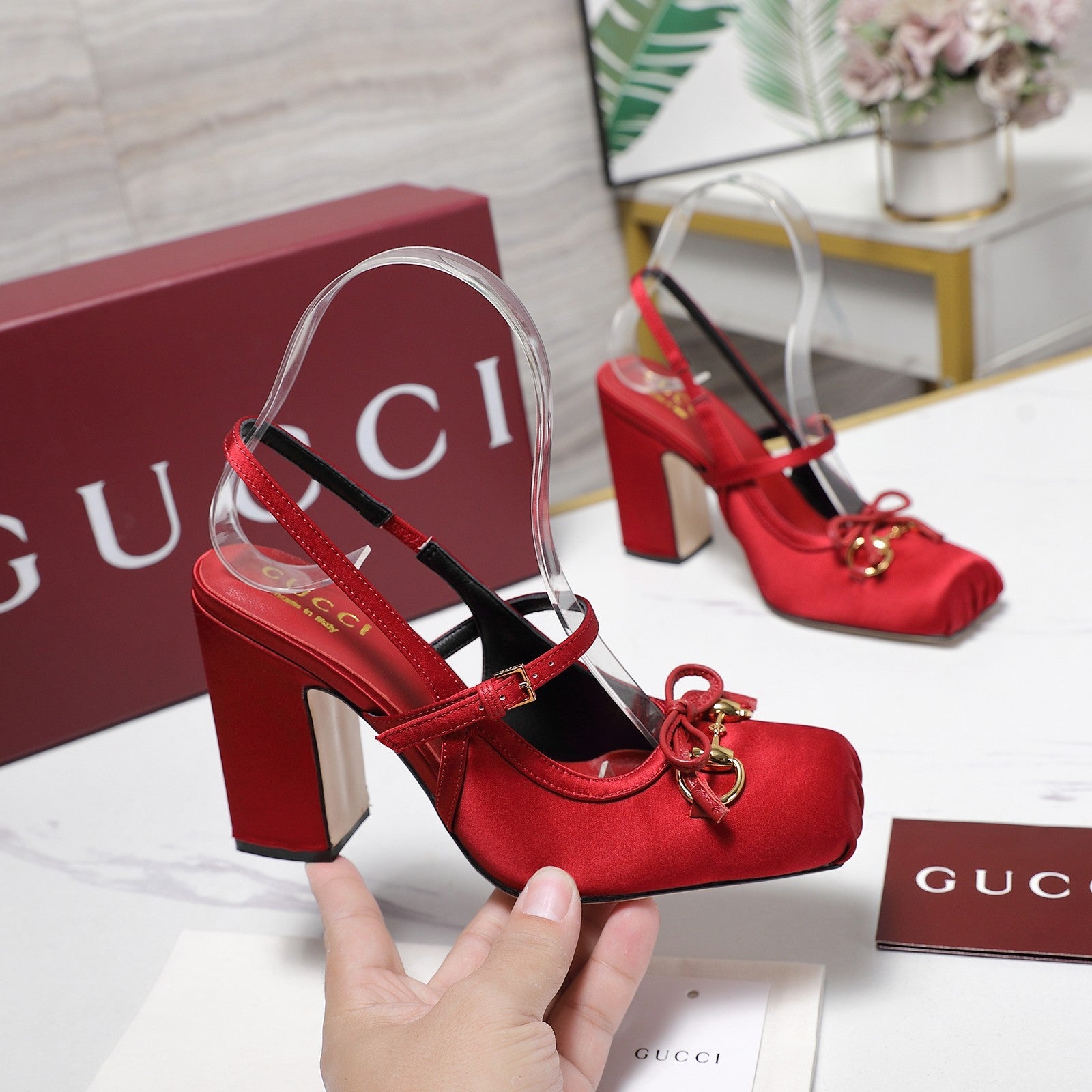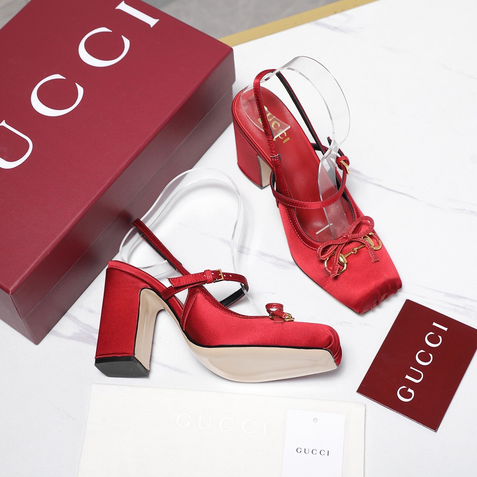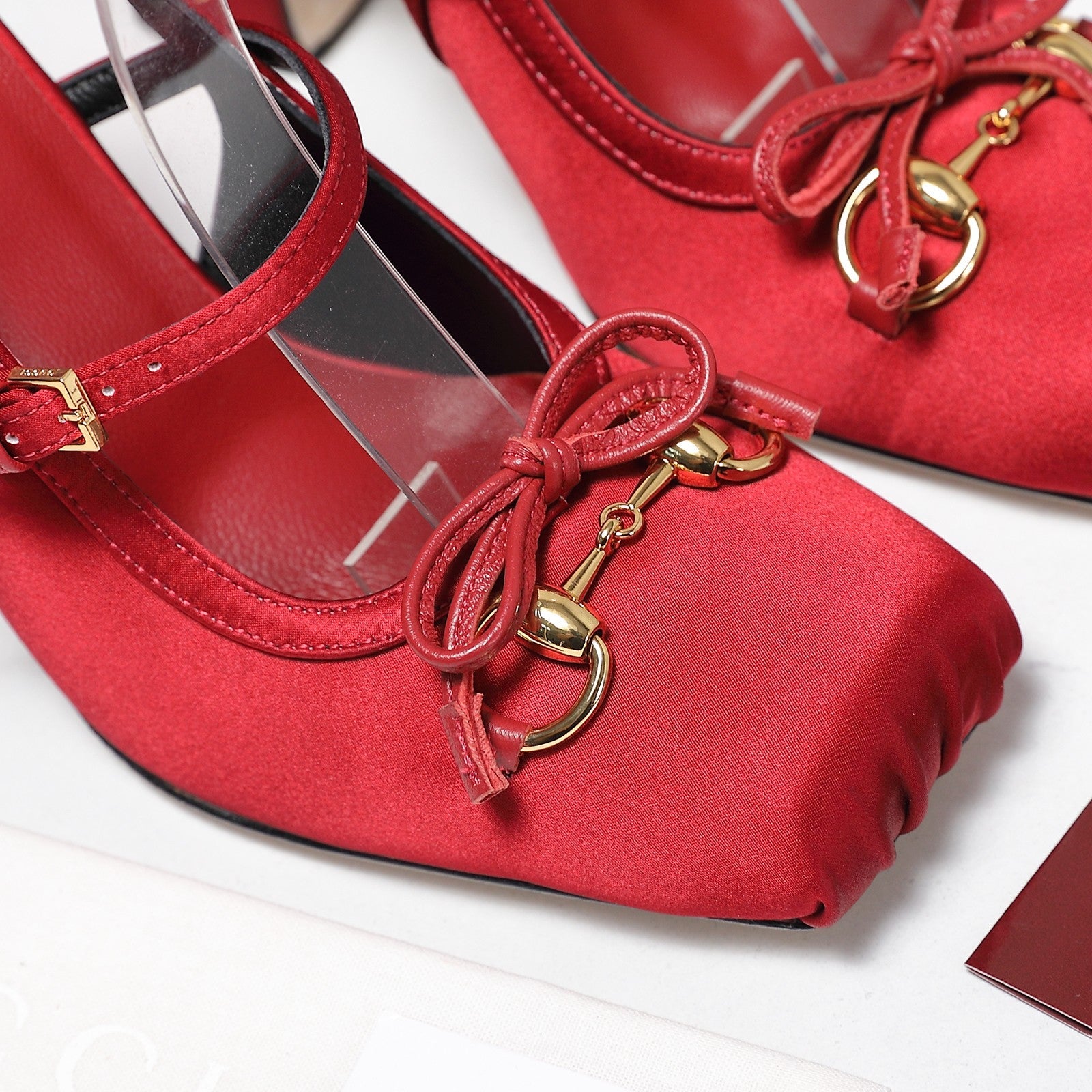 Gucci Horsebit Slingback Pumps Red Satin Fabric 504423