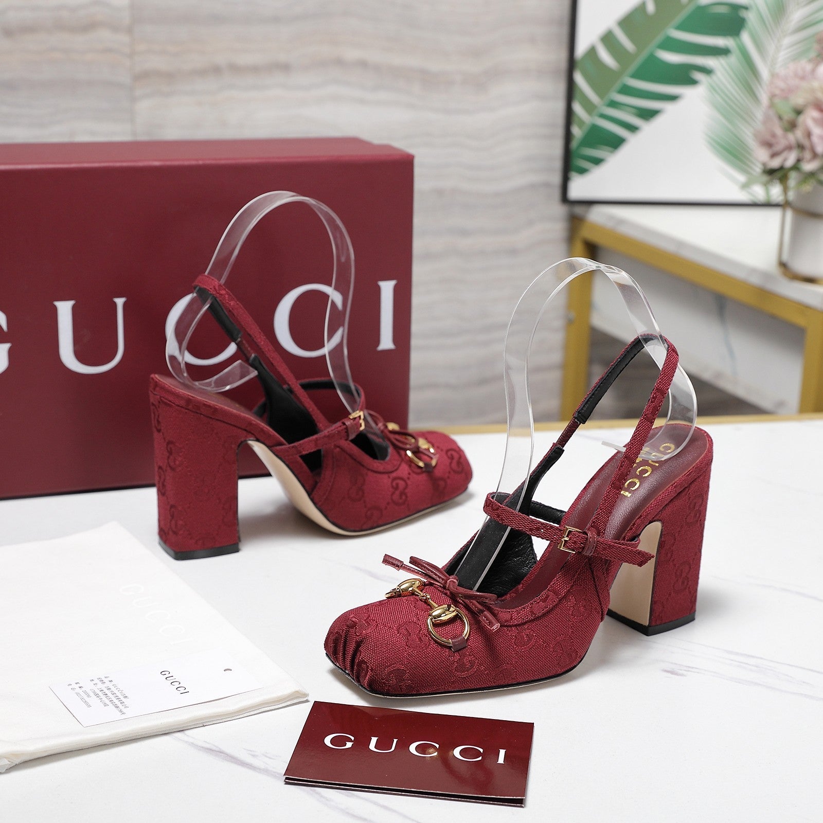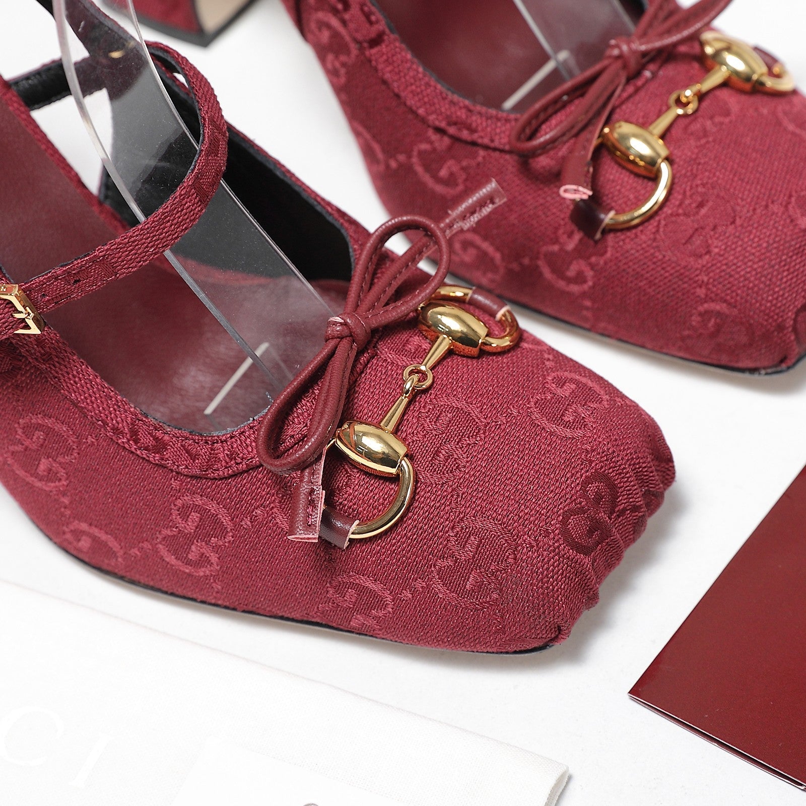 Gucci Horsebit Slingback Pumps Burgundy Jacquard Canvas 504426