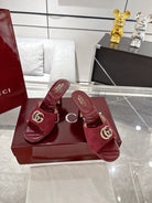 GC 2025 Double G High Heel Sandals Red Canvas Sheepskin 292467