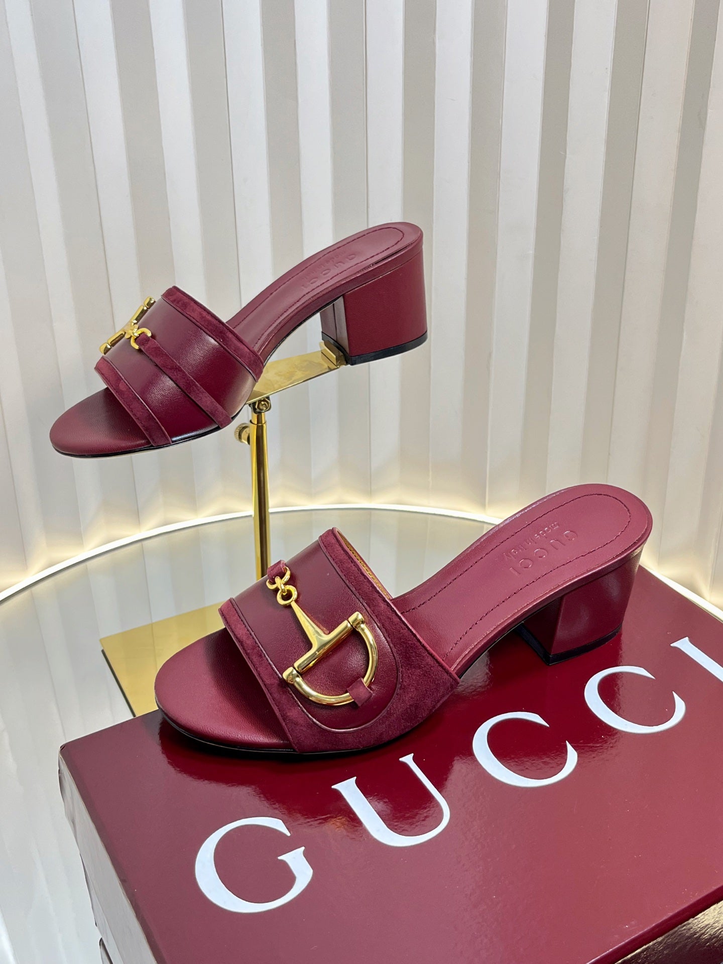 GC 25 Horsebit Sandals 50mm Red Suede Sheepskin 294653