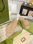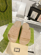 GC 25 Interlocking G 50mm Slide Sandal Beige Cowhide 292384