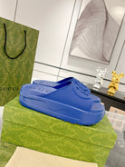 GC 25 Interlocking G 50mm Slide Sandal Blue Cowhide 292383