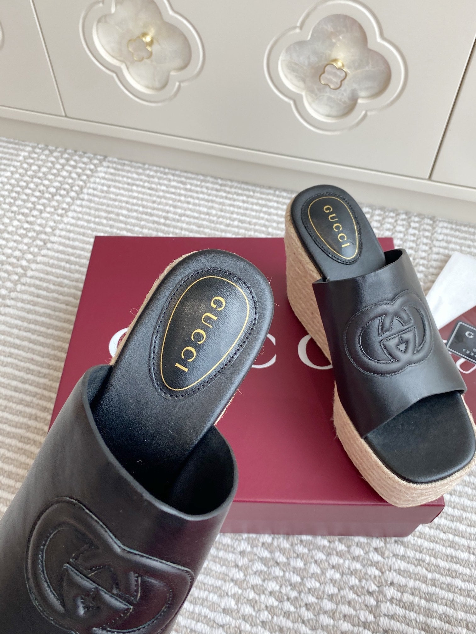 GC 25 Interlocking G Sandal Black Cord Cowhide 291031