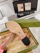 GC Double G Block Heel Thong Sandals Pink Leather 292409