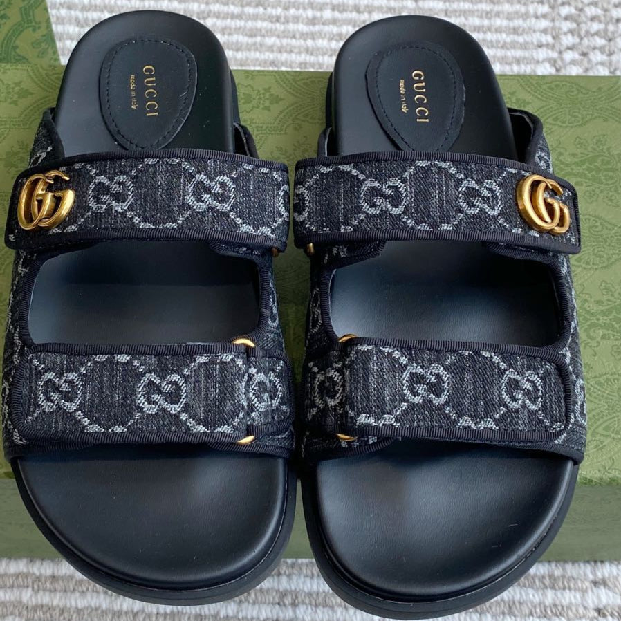 GC sandal with Double G Black Canvas Sheepskin 291017