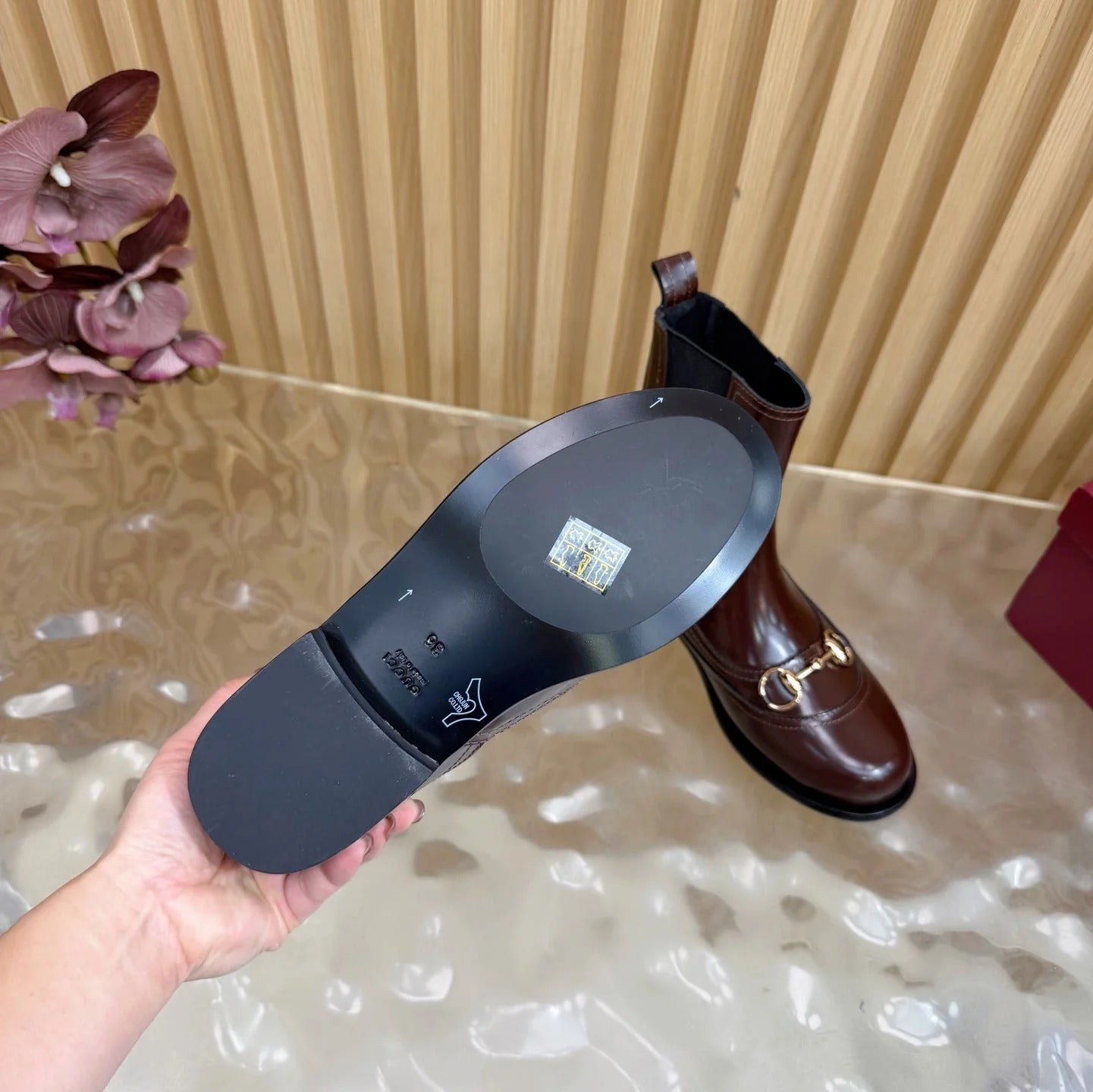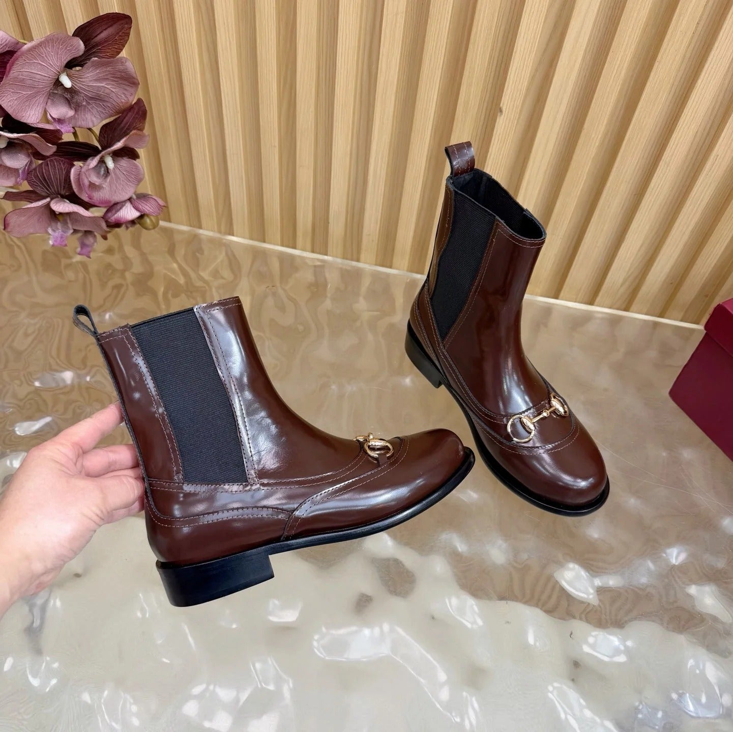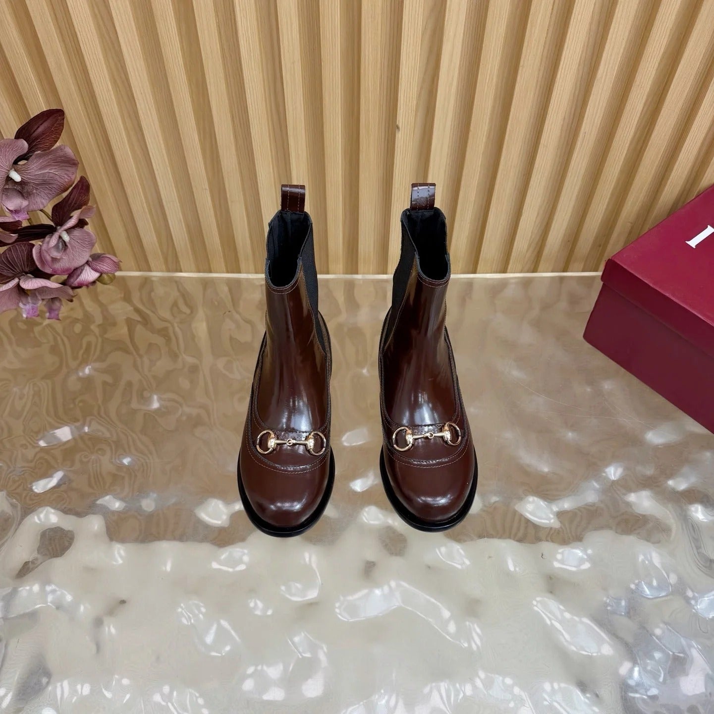 GG 26 Horsebit Martens Boots Glossy Brown Sheepskin 589467