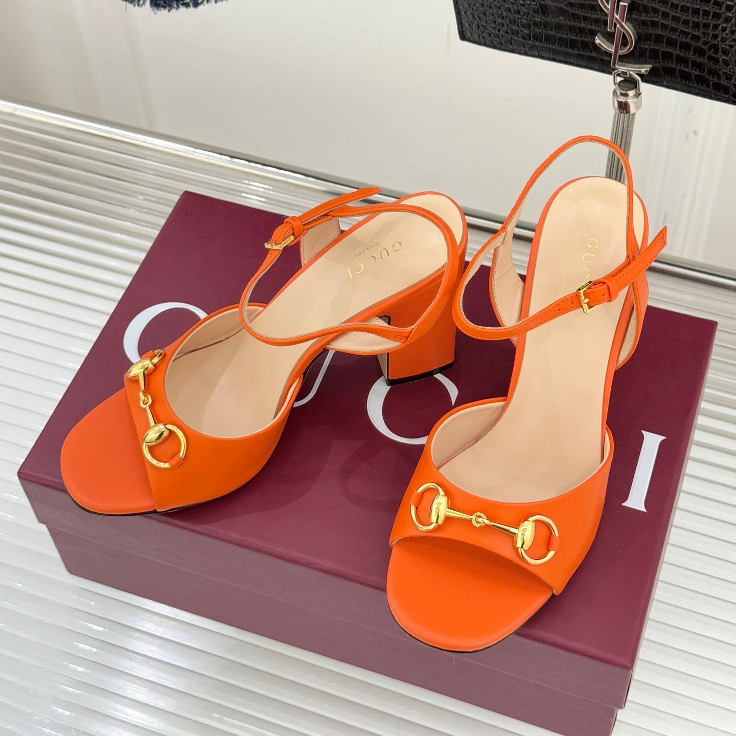 GG 26WF Chunky Heel Sandals 5cm Orange Sheepskin 632554