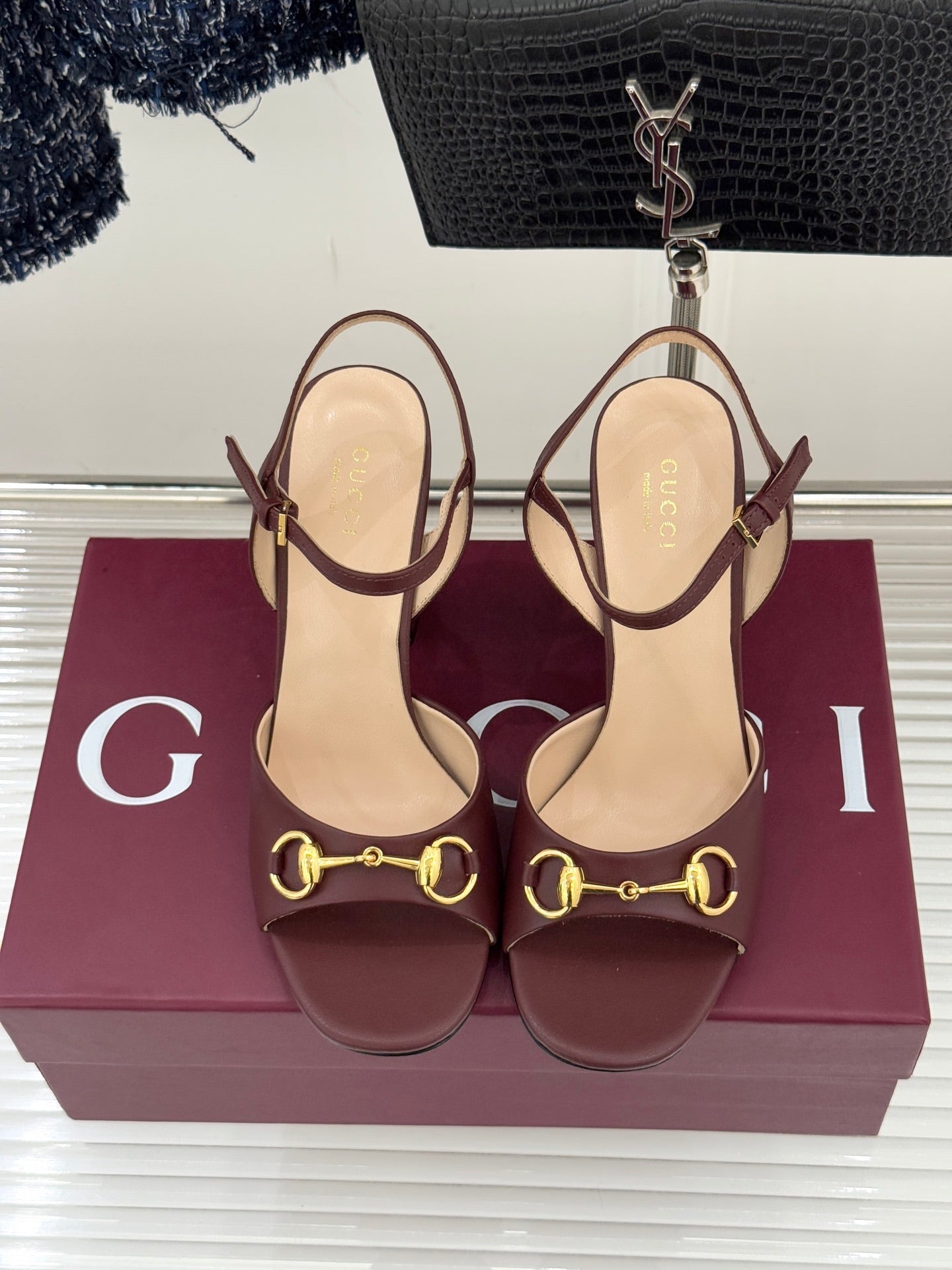 GG 26WF Chunky Heel Sandals 5cm Rosso Ancora Sheepskin 632553