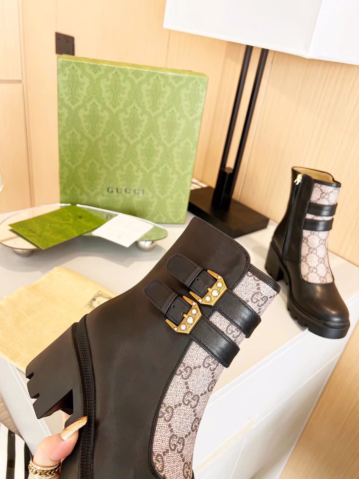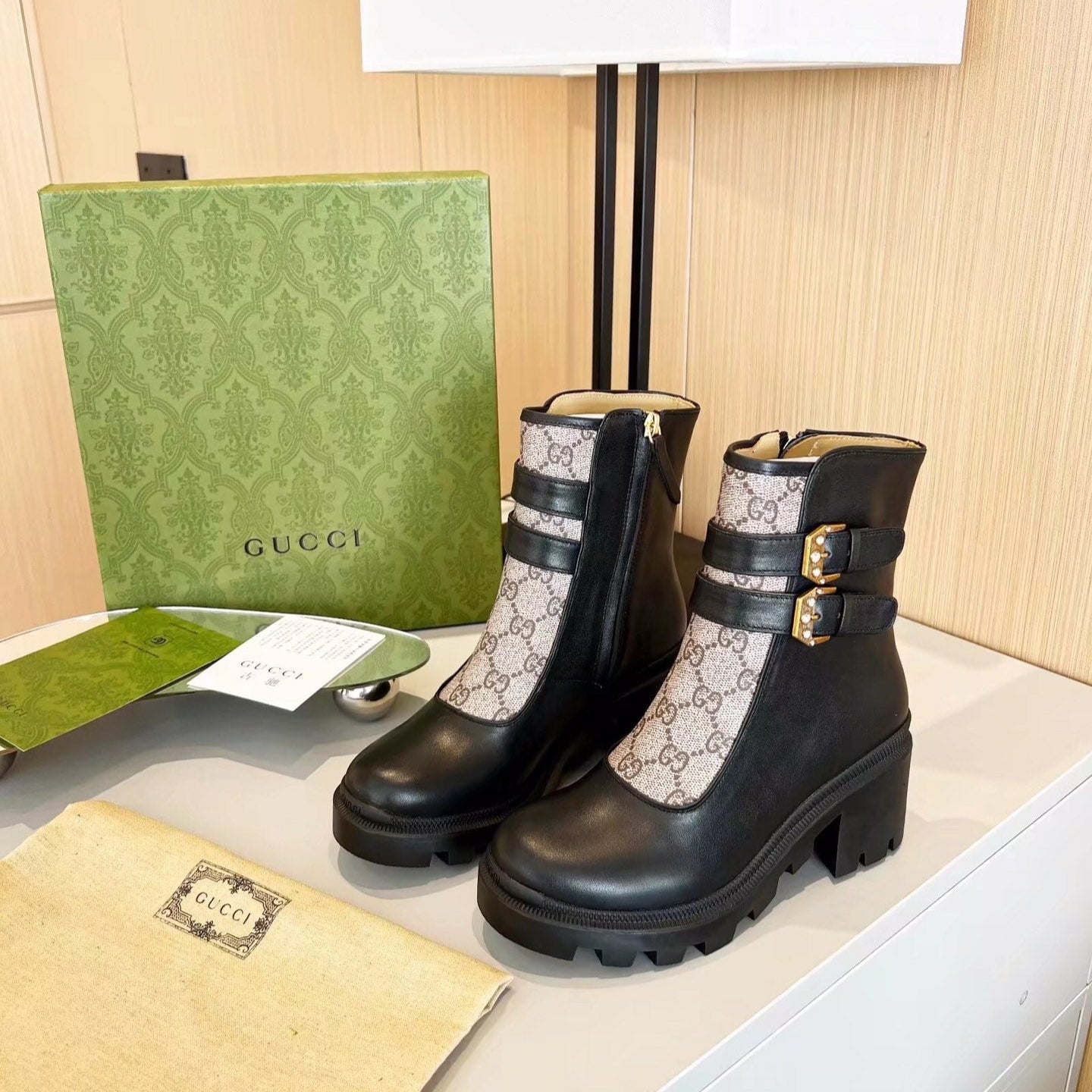 GG ankle boots black monogram canvas cowhide 397794