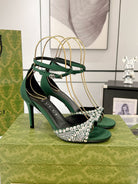 GG CRYSTAL ASTLETON GREEN HIGH HEEL SANDALS SATIN