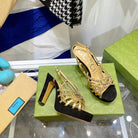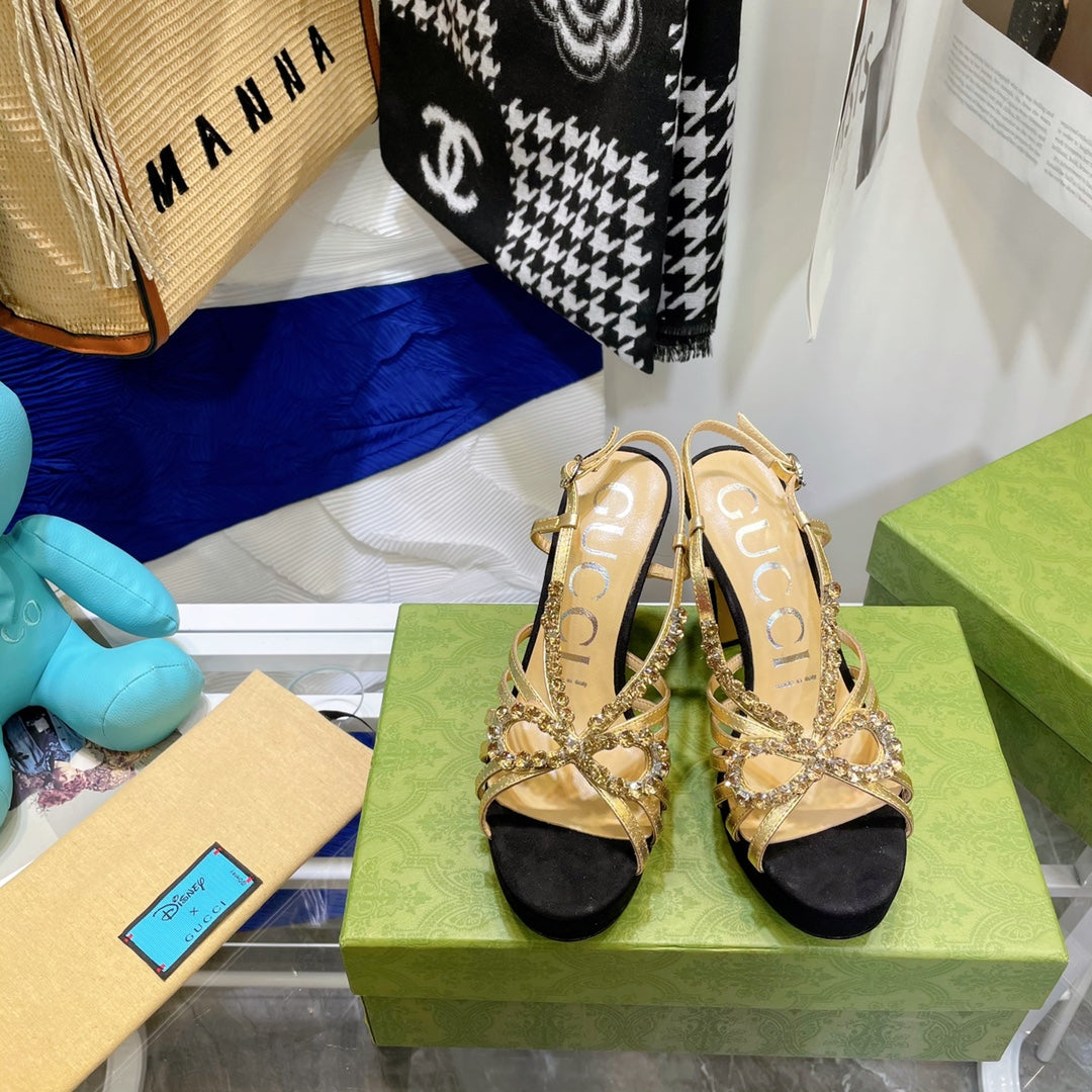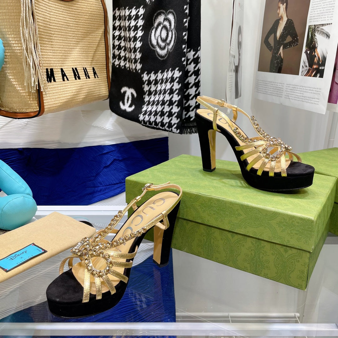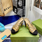 GG CRYSTAL HIGH HEEL SANDAL BLACK GOLD LAMBSKIN