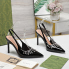 GG CRYSTAL HIGH HEEL SANDAL BLACK LAMBSKIN