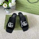 GG CRYSTAL SLIDES SANDAL BLACK CALFSKIN