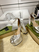 GG CRYSTALS PLATFORM PUMPS SILVER CALFSKIN