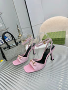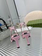 GG Gold Buckle Sandal 80mm Light Pink Patent Leather 457556