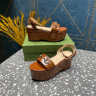 GG HORSEBIT FLATFORM SANDAL CARAMEL CALFSKIN