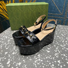 GG HORSEBIT FLATFORM SANDAL GLOSSY BLACK CALFSKIN