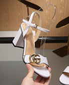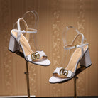 GG Marmont Ankle Strap Sandal 8cm White Sheepskin 342563