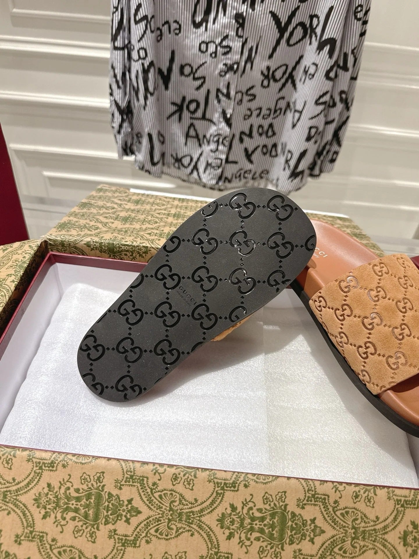 GG SLIDES IN BURNT ORANGE SUEDE WITH EMBOSSED LOGO STYLE 5
