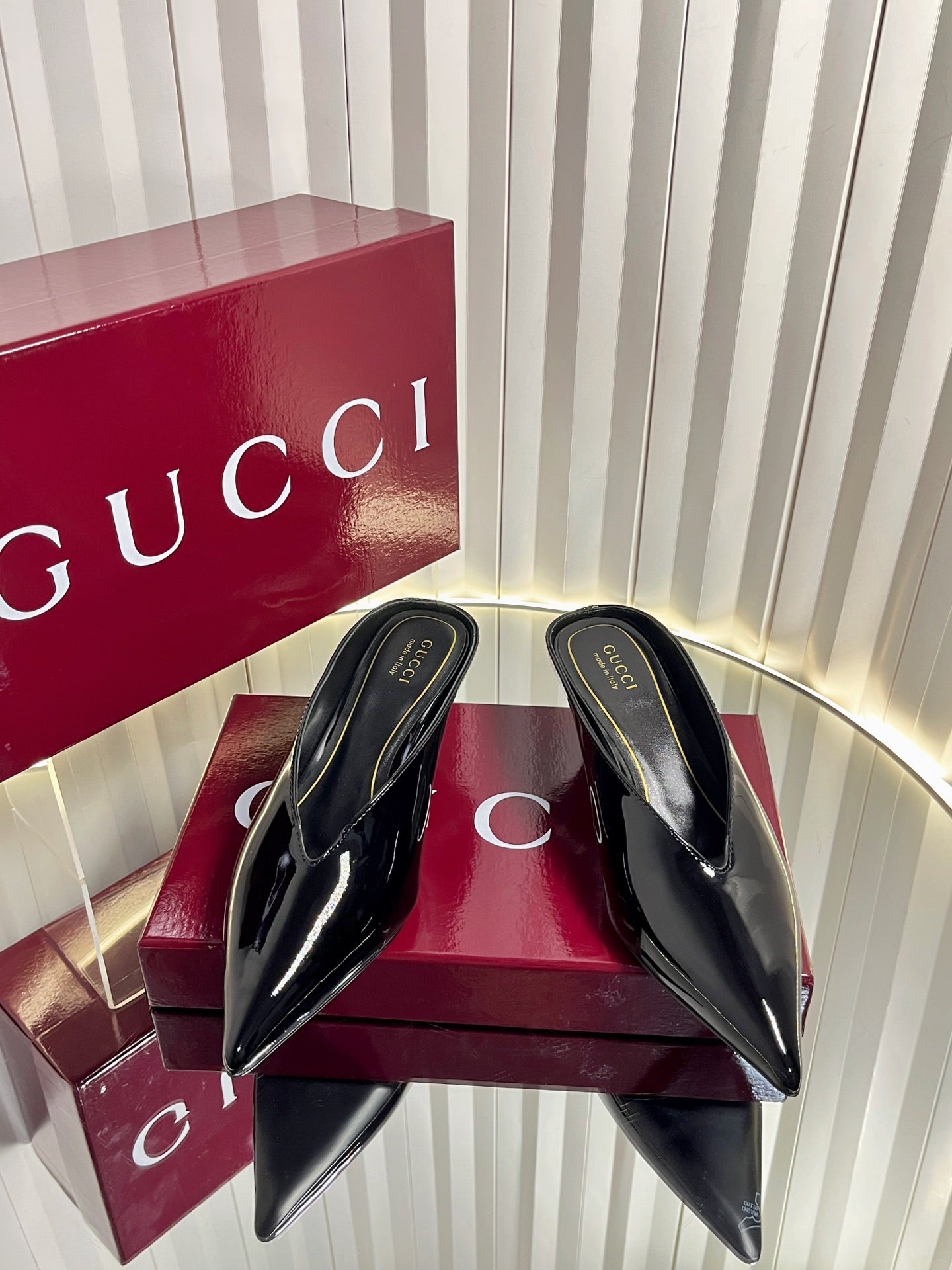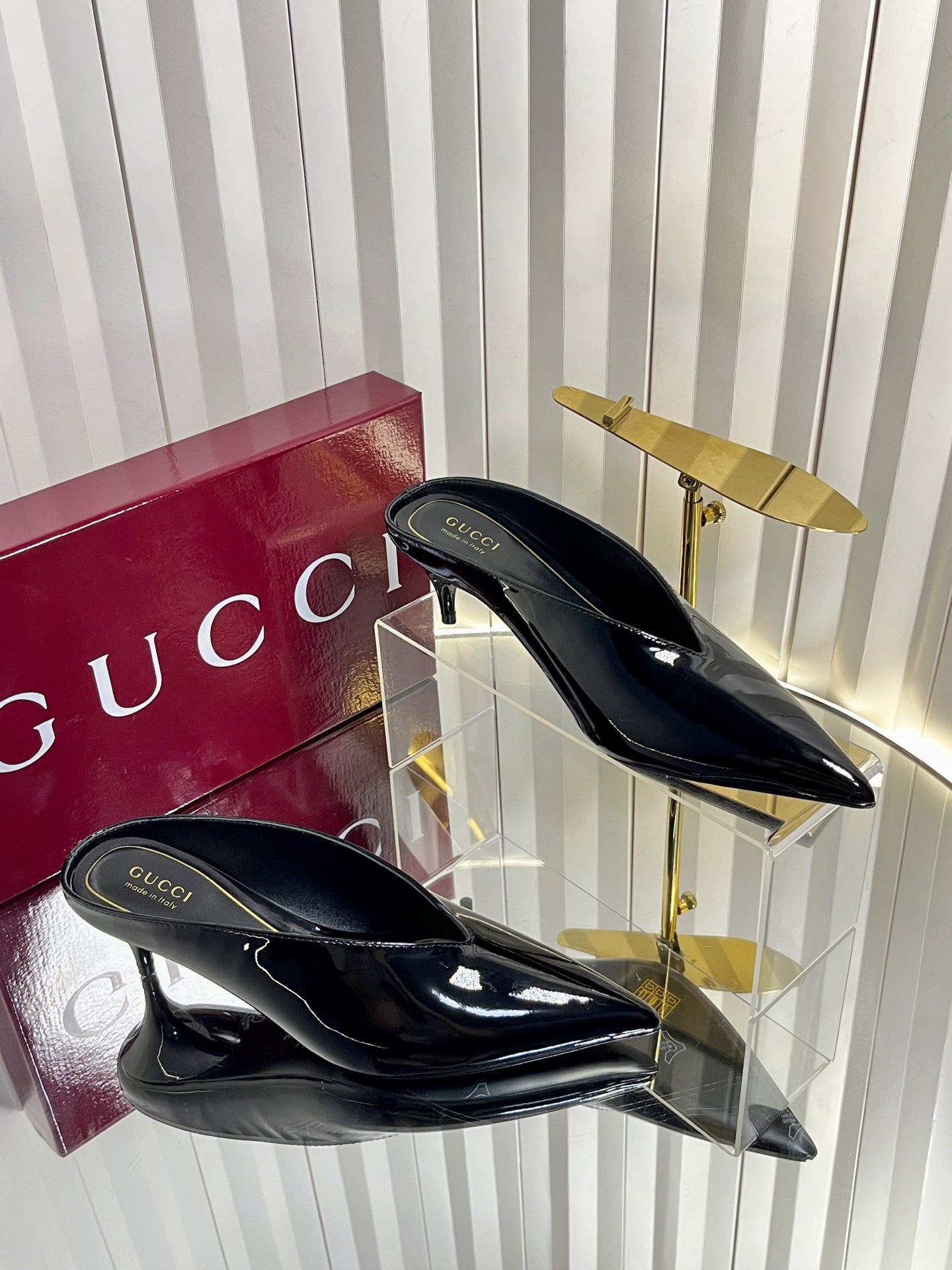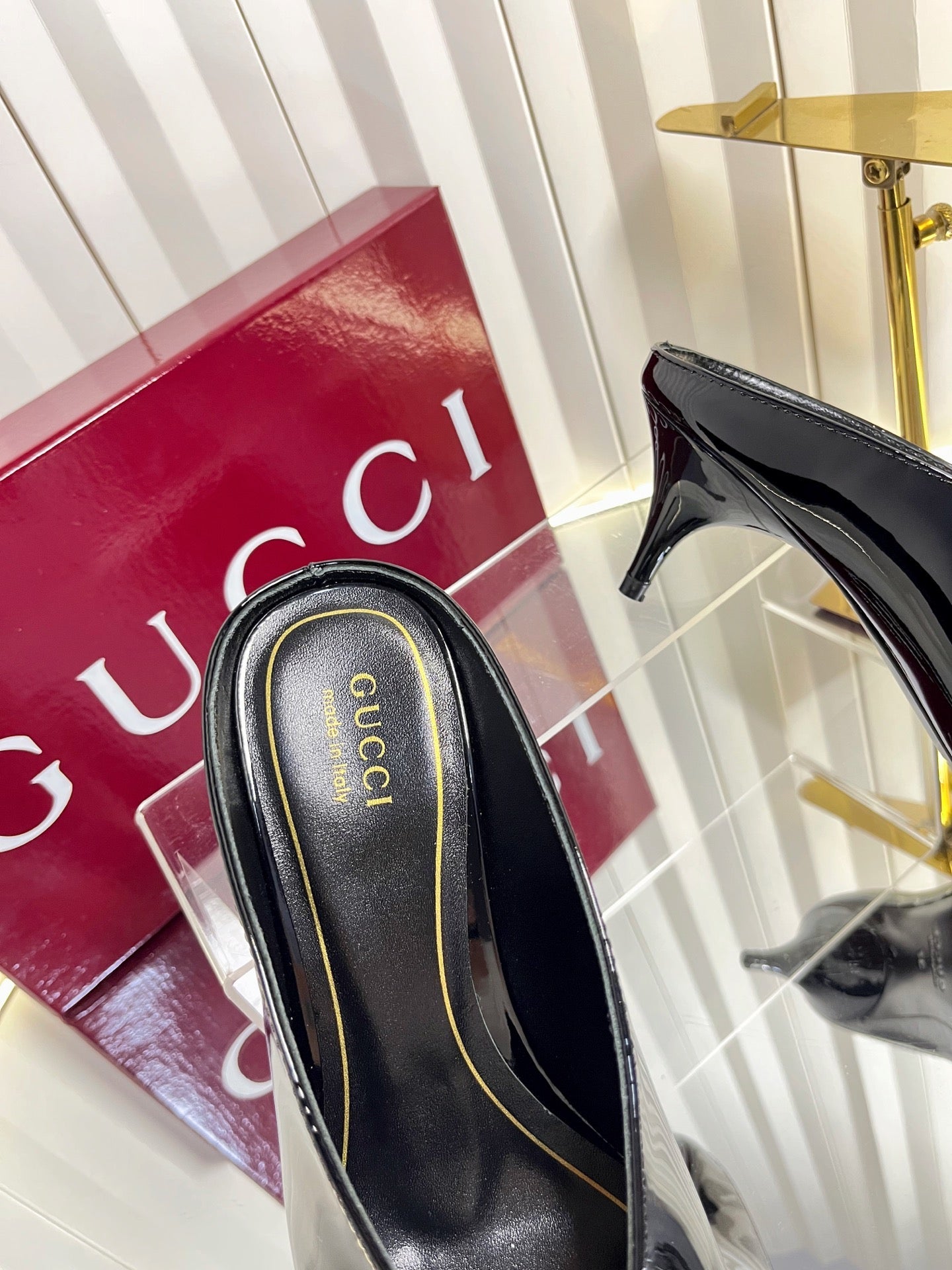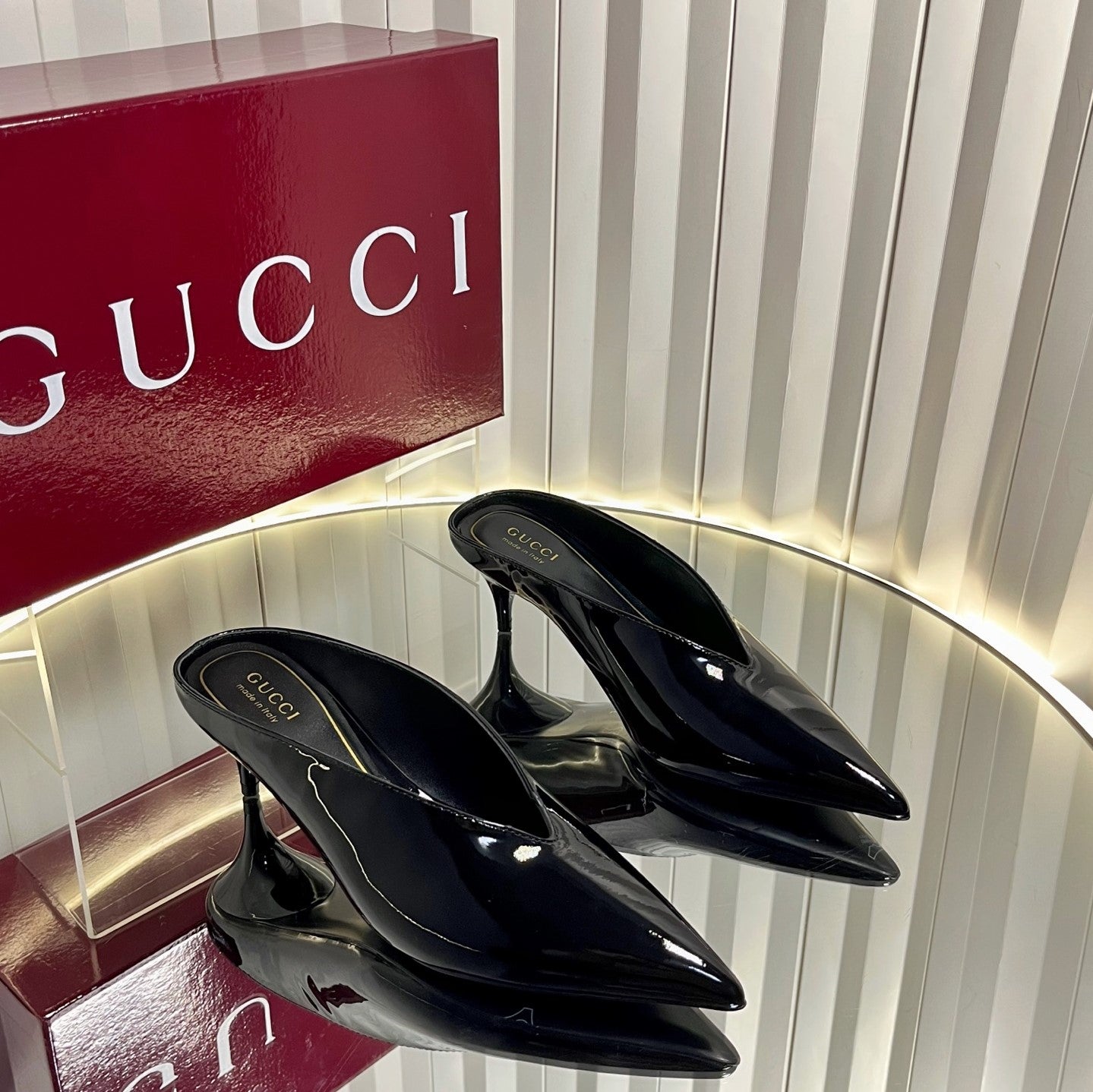 GG Women's Heeled Mules 50mm Black Patent Leather 548399