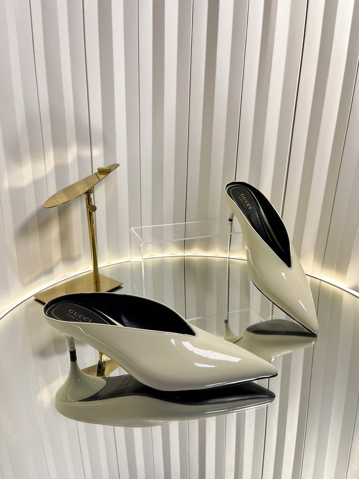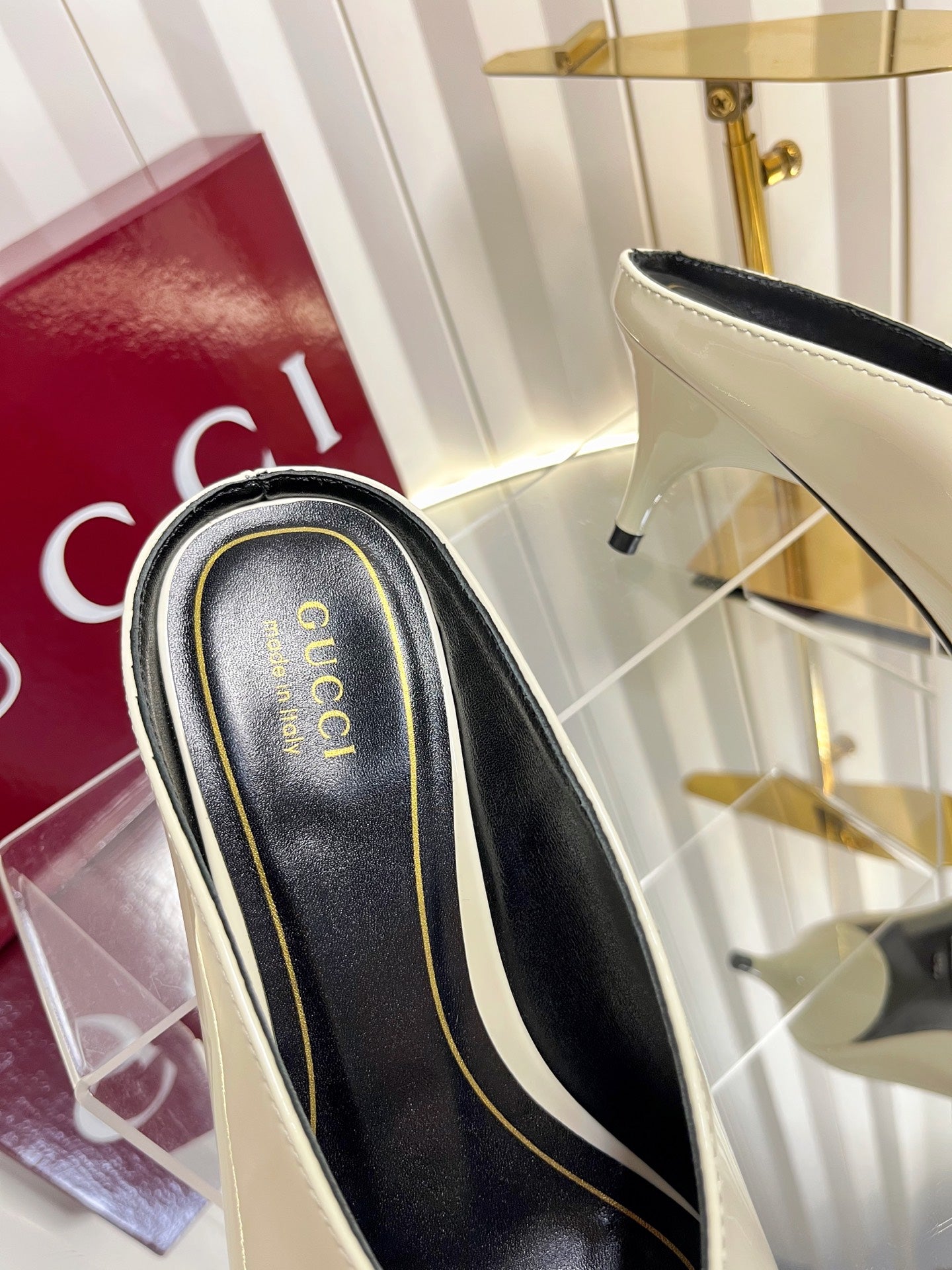 GG Women's Heeled Mules 50mm Cream Patent Leather 548396