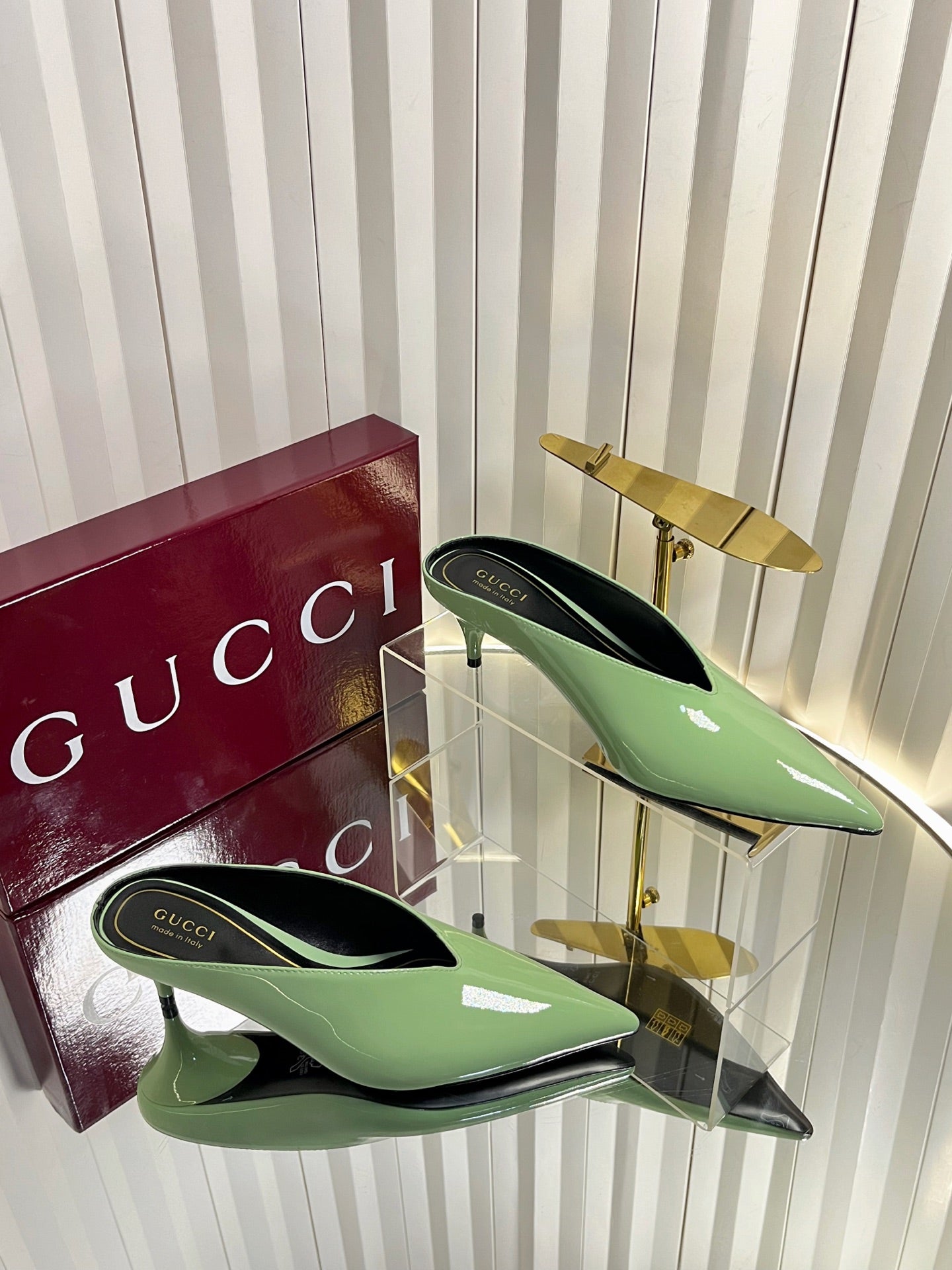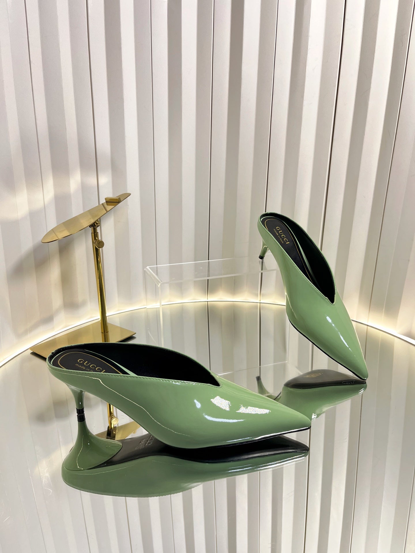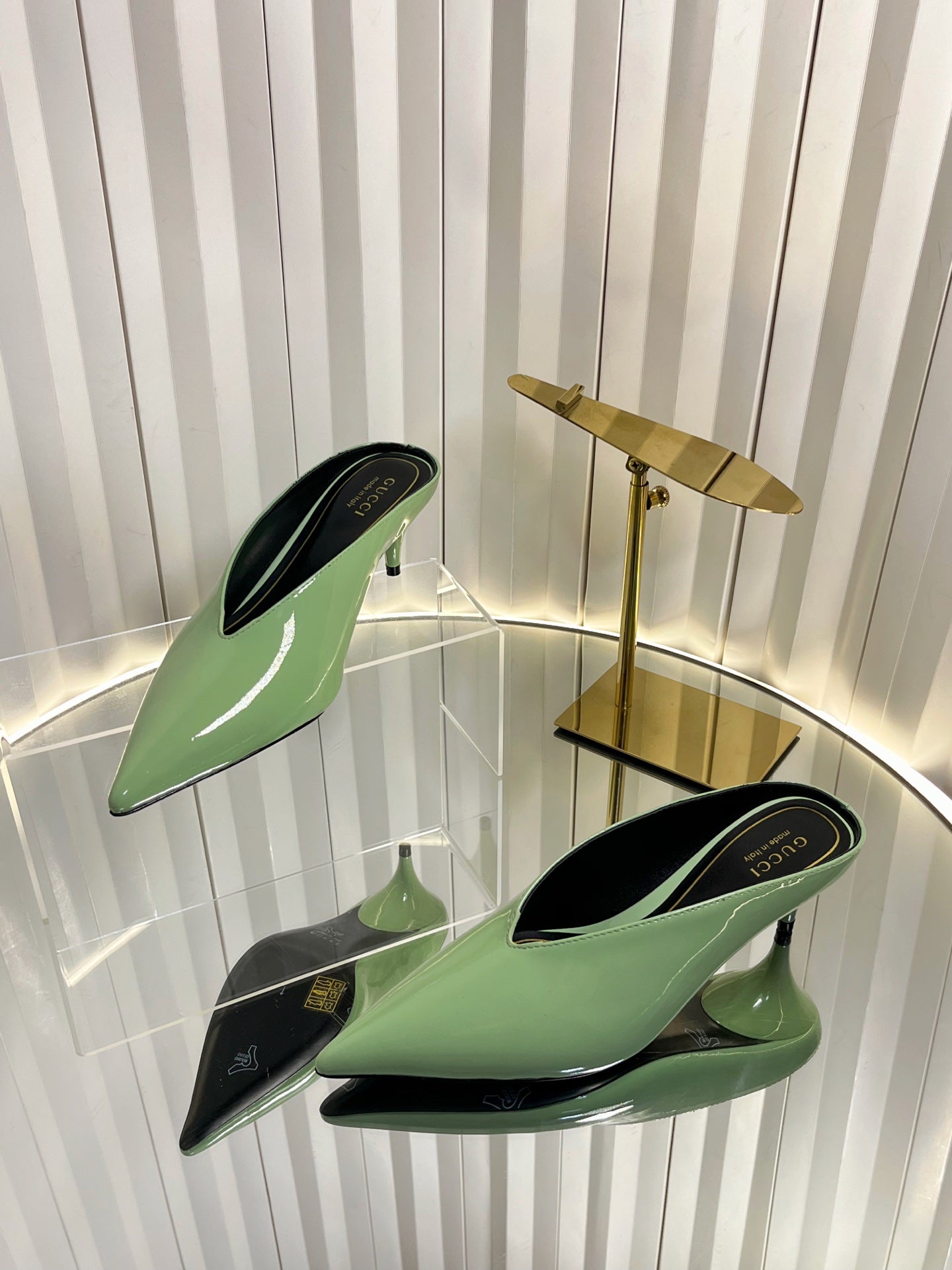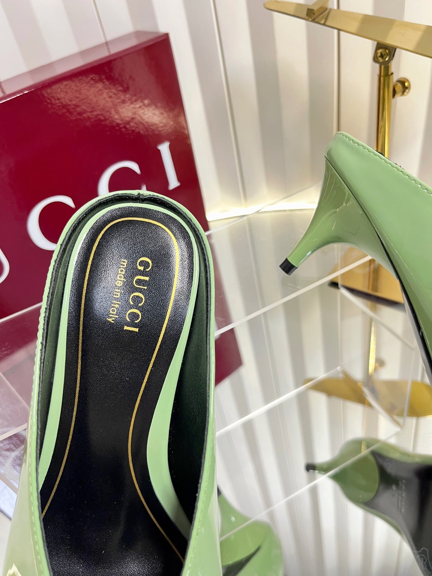 GG Women's Heeled Mules 50mm Matcha Green Patent Leather 548394