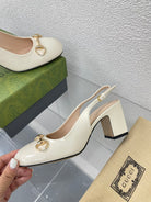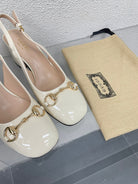 GG WOMEN'S HORSEBIT SLINGBACK 65MM IN WHITE CALFSKIN