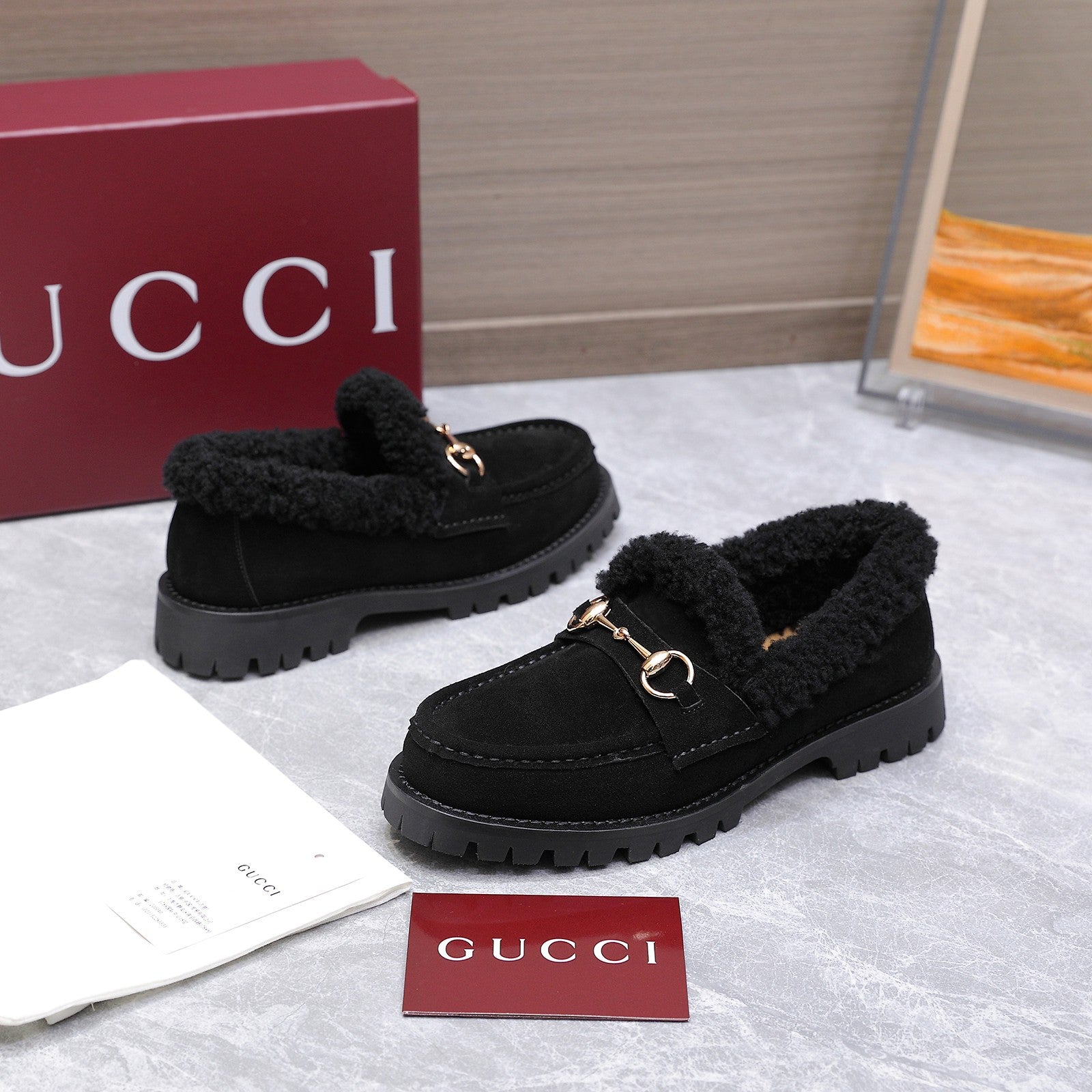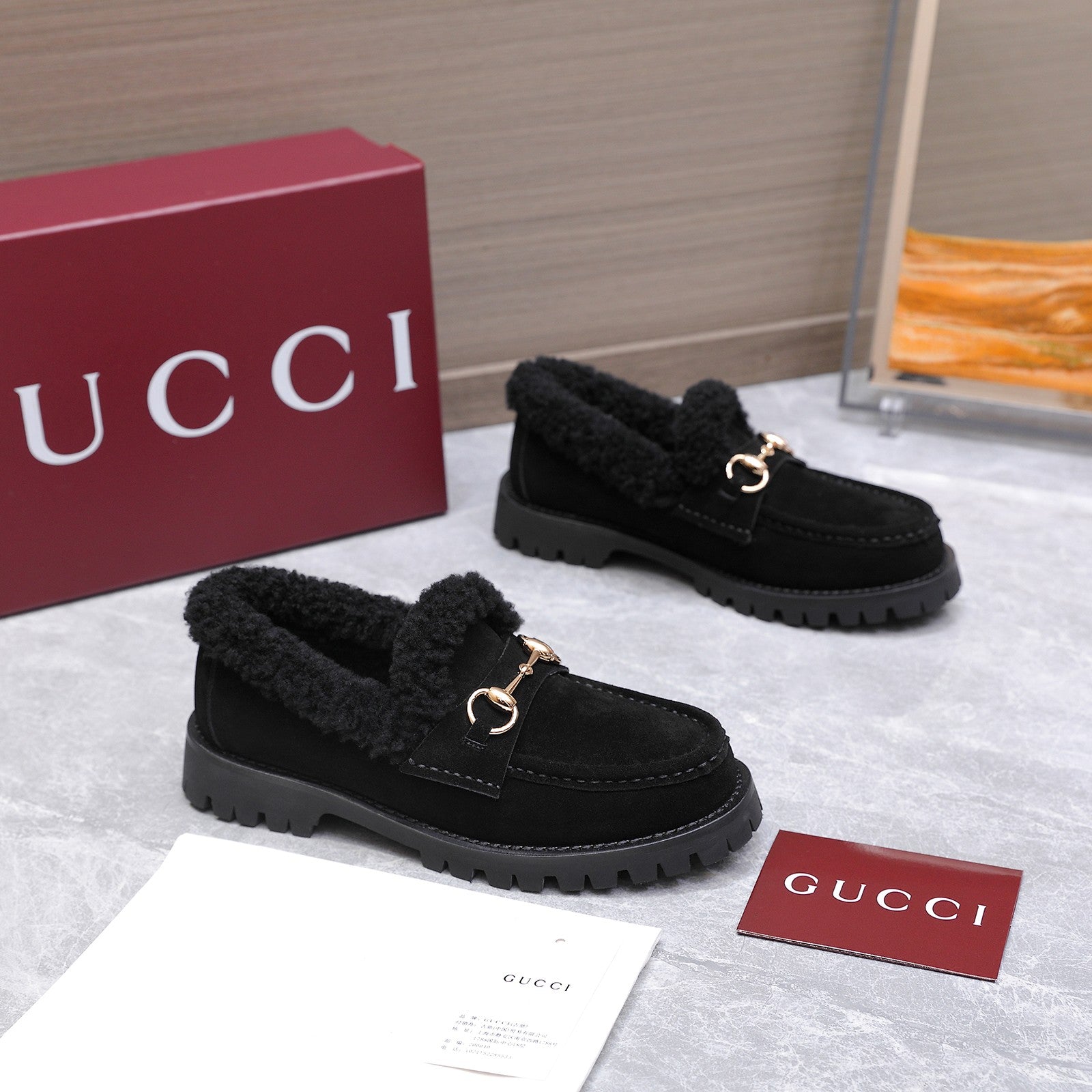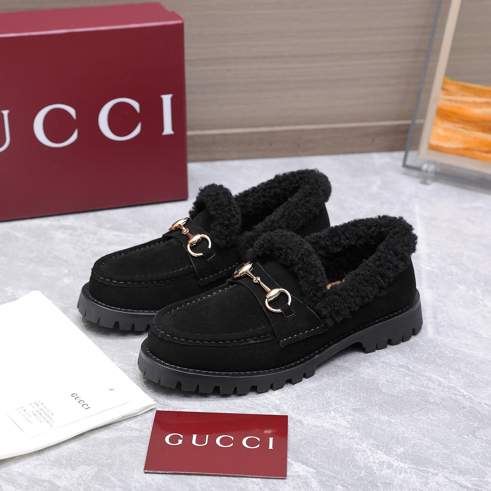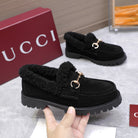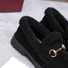 GG Women's Loafer Horsebit Black Suede Shearing 547326