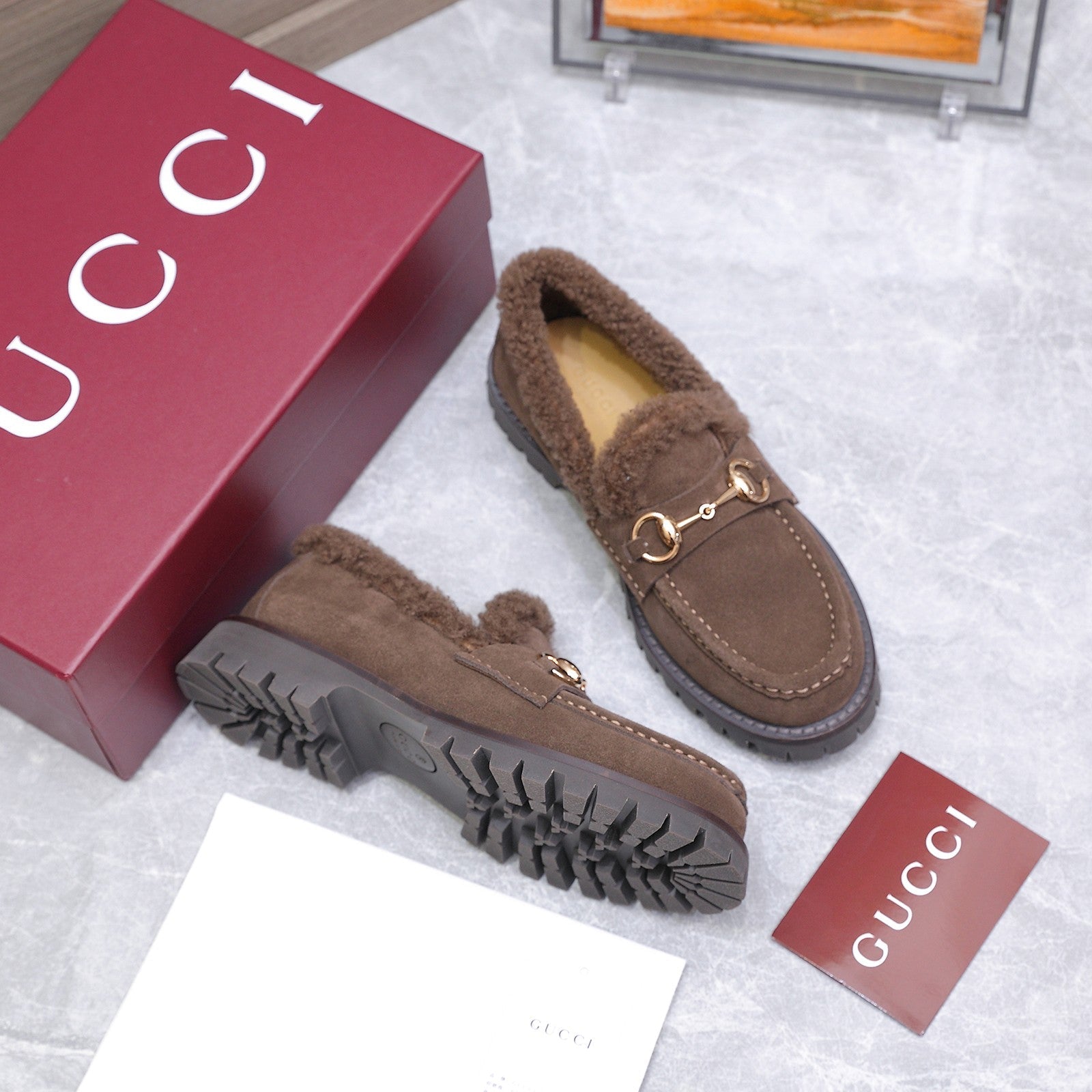 GG Women's Loafer Horsebit Brown Suede Shearing 547322