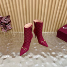 Gucci 2025 Thick-heeled Square-toed Ankle Boots Red Gold Sheepskin Fabric 498066